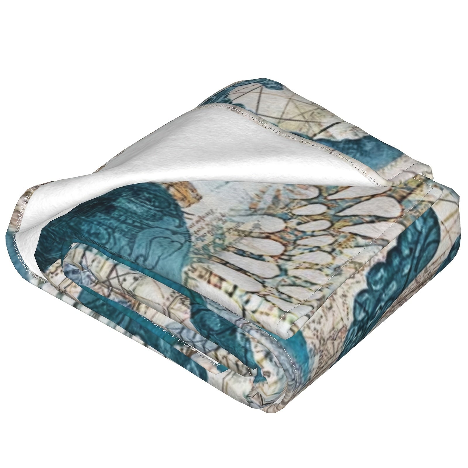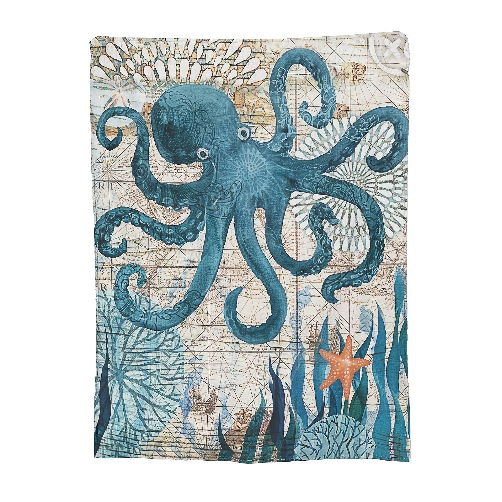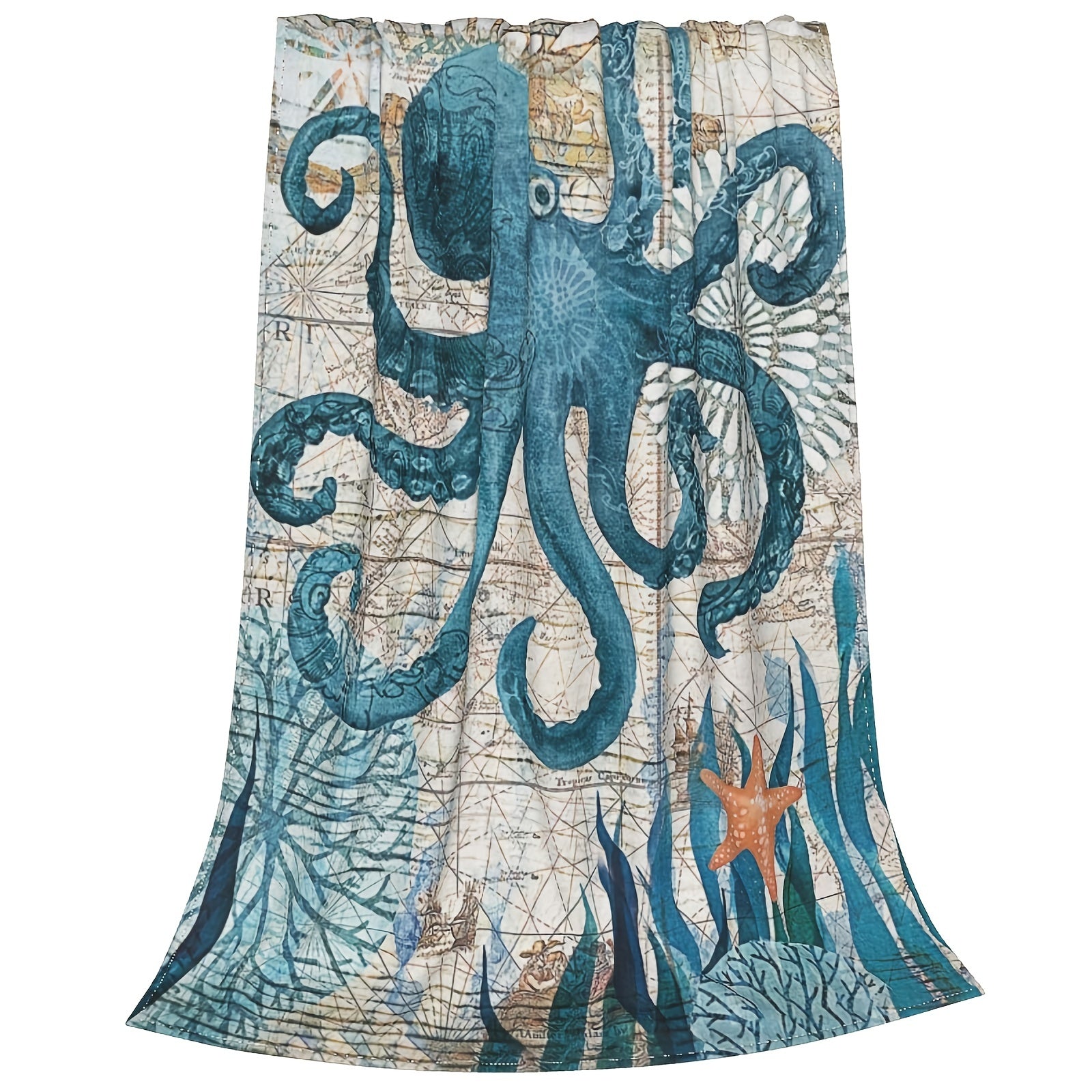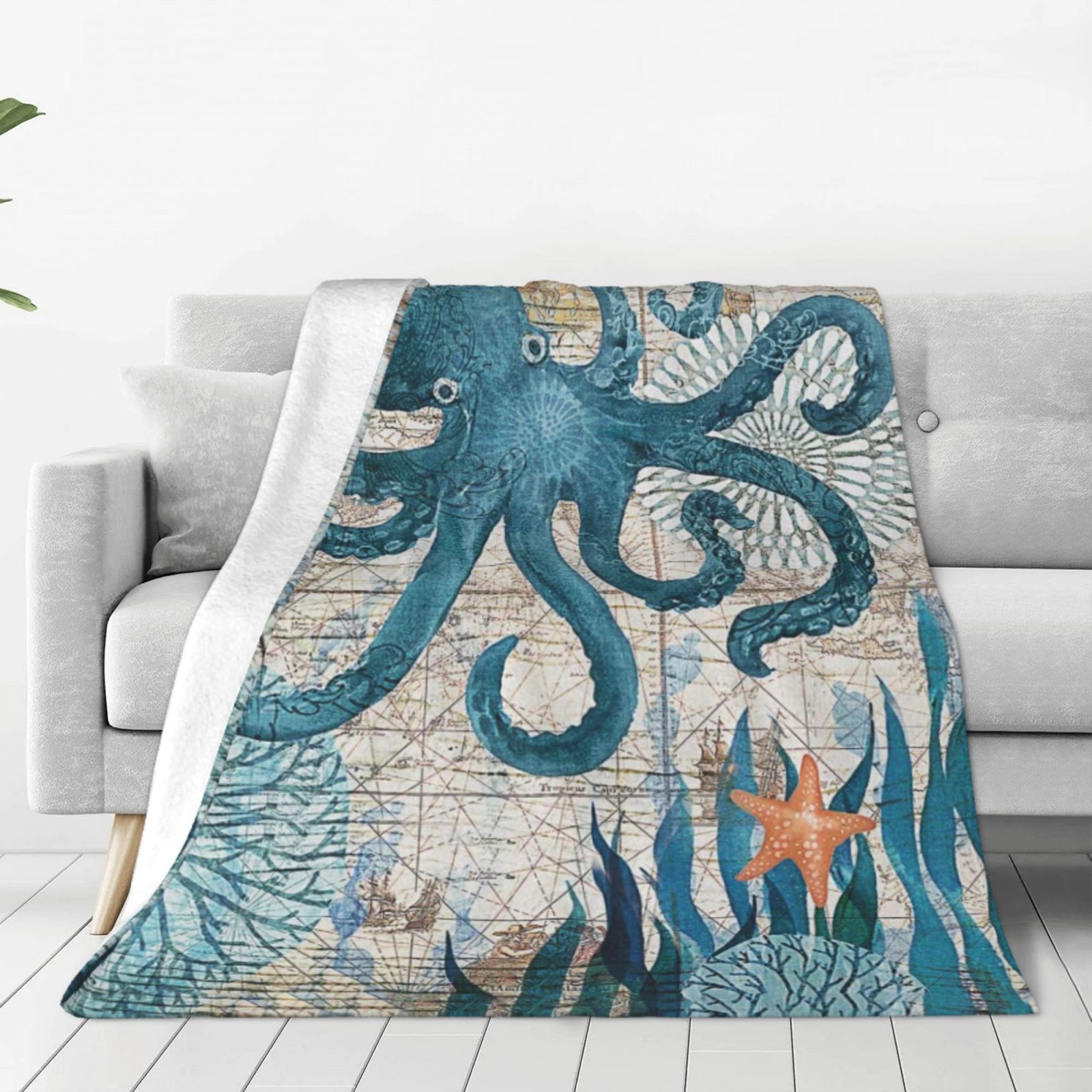 Retro Octopus Pattern Blanket, Old Map & Ocean Blanket, Octopus Lover Blanket