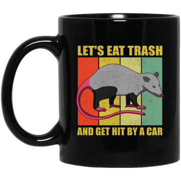 Retro Opossum Let's Eat Trash Black Mug