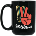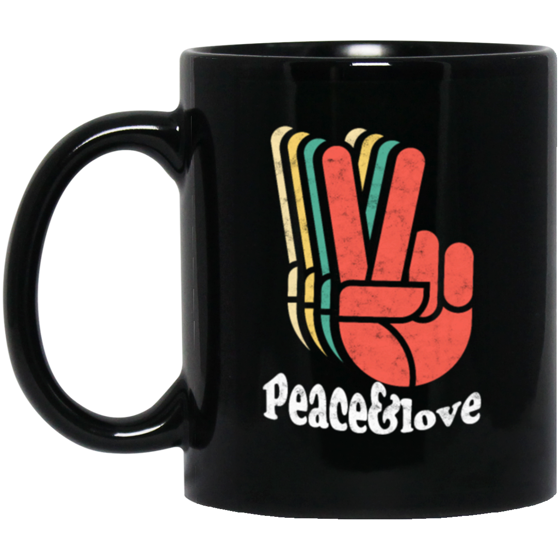 Retro Peace Love 60's 70's Hippie, Vintage Inspired Black Mug