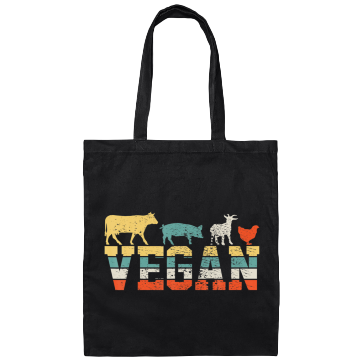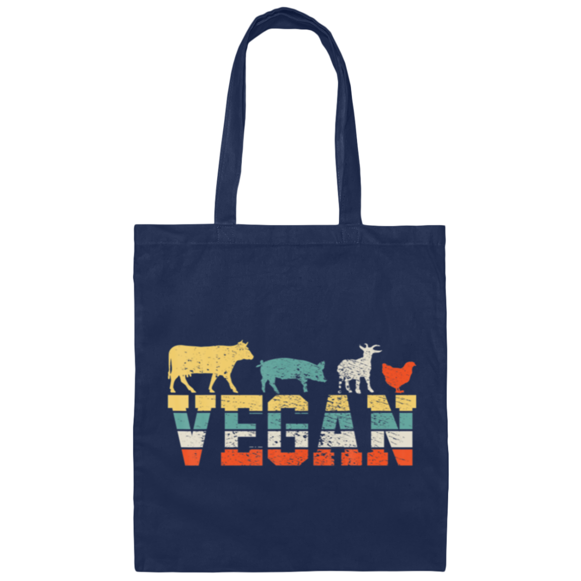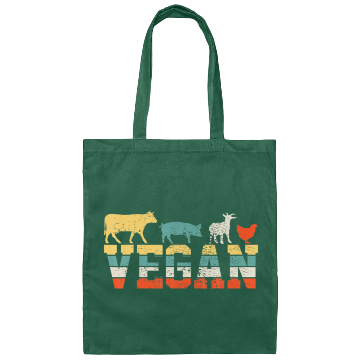 Retro Vegan, Animal Lover Vintage Canvas Tote Bag