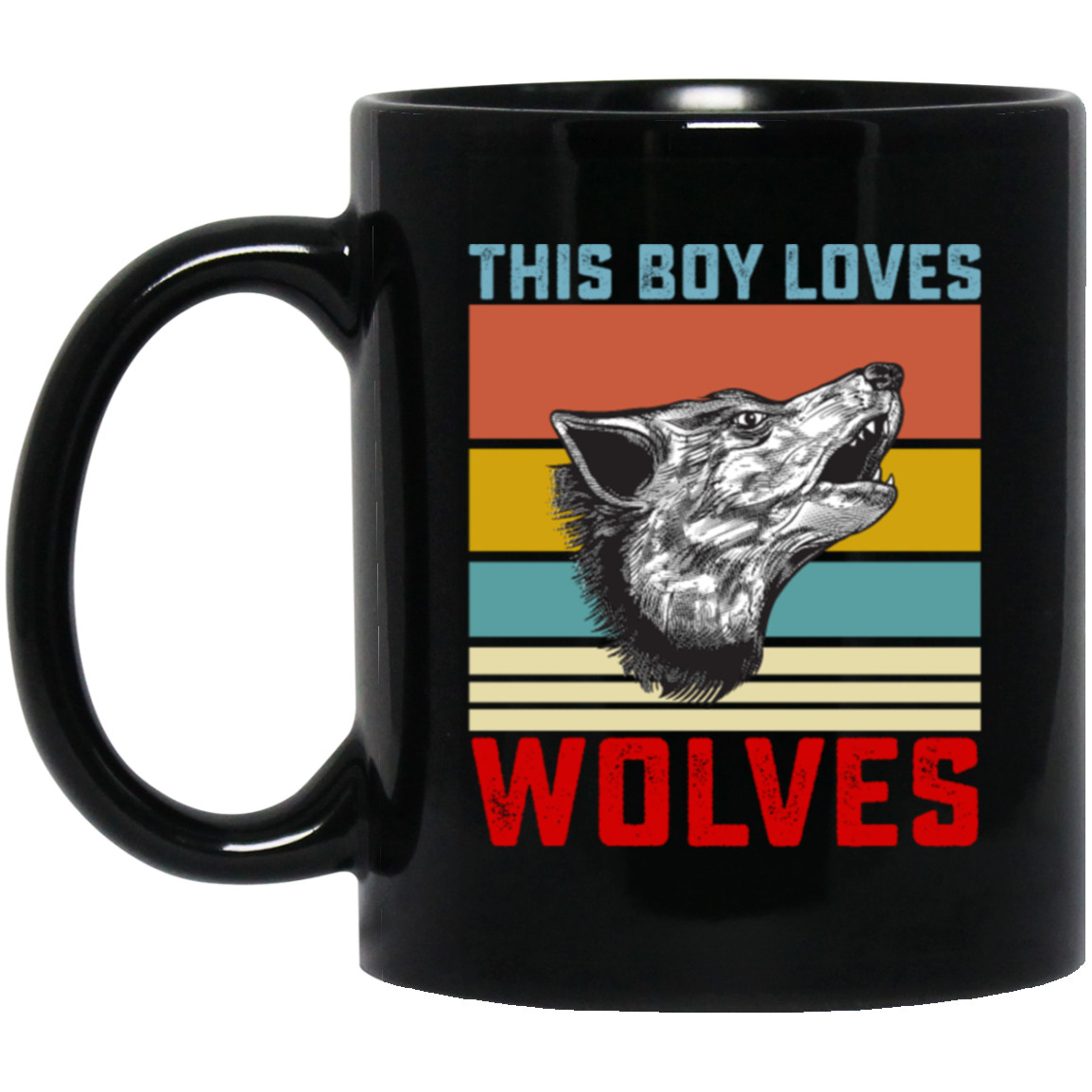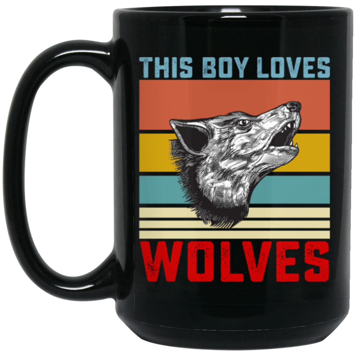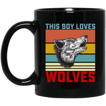 Retro Wolves Lover, This Boy Loves Wolves, Wolves Best Vintage Gift Black Mug