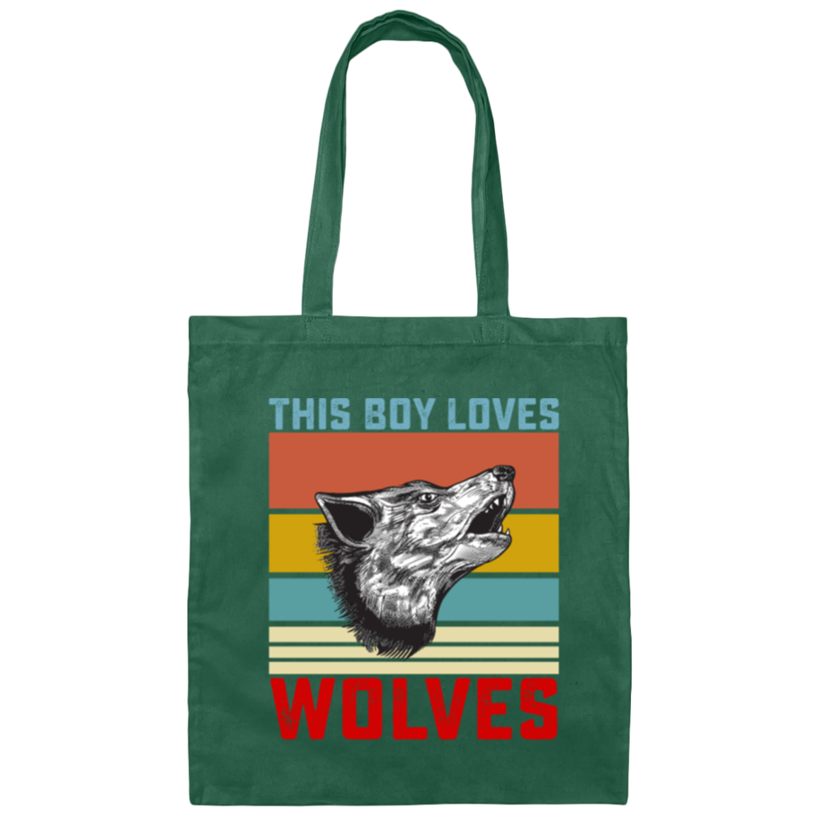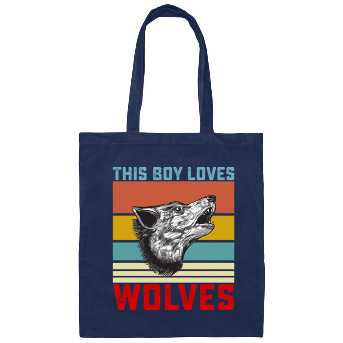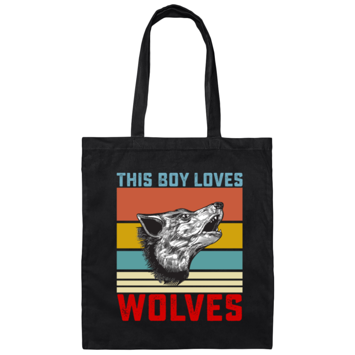 Retro Wolves Lover, This Boy Loves Wolves, Wolves Best Vintage Gift Canvas Tote Bag