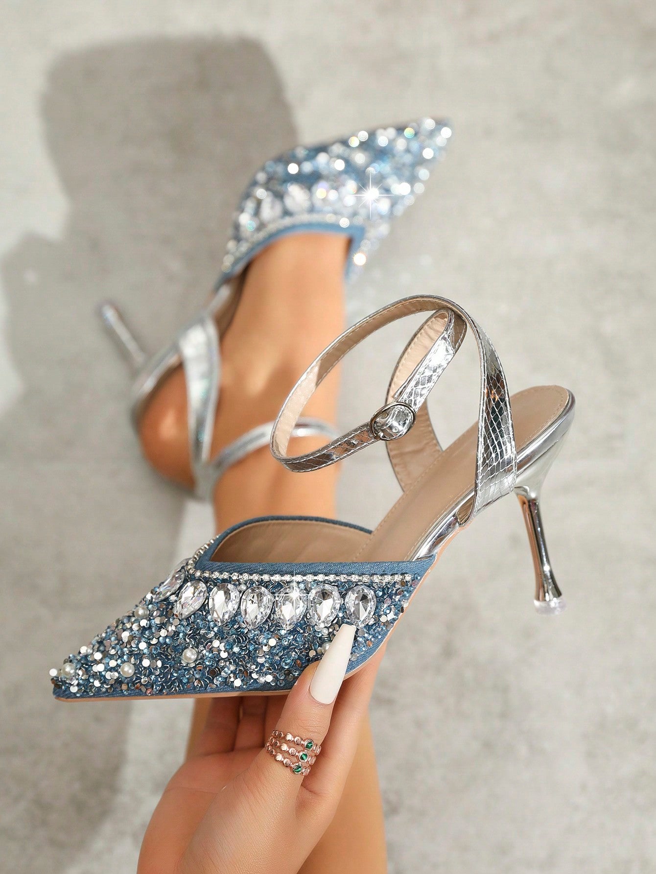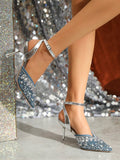 Rhinestone Chain Closed Toe High Heel Shoes: Perfect for Daily Wear and Parties