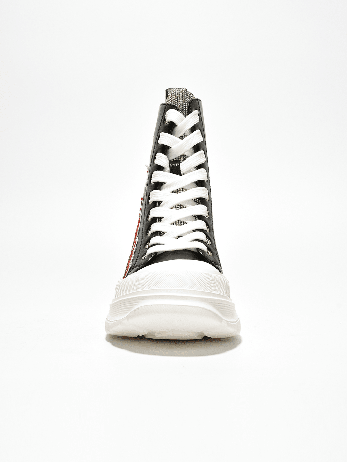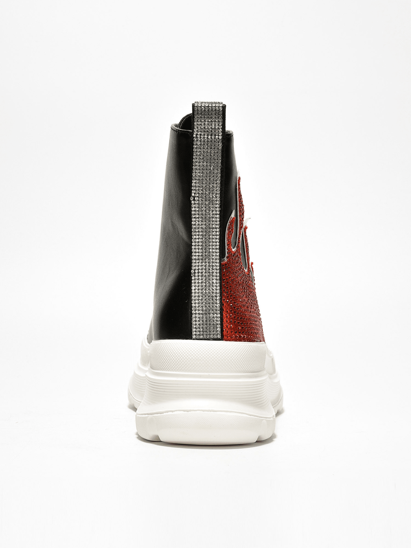 Rhinestone Flame High Top Lug Sneakers: Sparkle and Shine in Style!