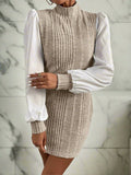Ribbed Stand Collar Dress with Bishop Sleeves - A Sophisticated Choice
