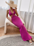 Elevate your vacation wardrobe with our Ring-Linked Cut-Out Backless Sweater Dress. This ultimate essential features a stylish ring-linked cut-out design that adds a touch of sophistication to your look. Made with comfortable, high-quality material, it's the perfect dress for any beach getaway or tropical destination.