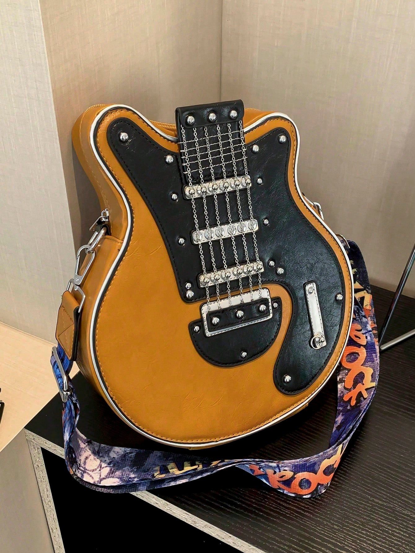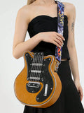 This vintage guitar shaped bag is the ultimate street fashion accessory, perfect for any music lover or fashionista. Stand out in style with our unique and statement-making bag. Made with high-quality materials, this bag is durable and functional, while also adding a touch of musical flair to any outfit.