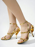 Rose Gold Elegance: Ankle Strap Metallic Heels