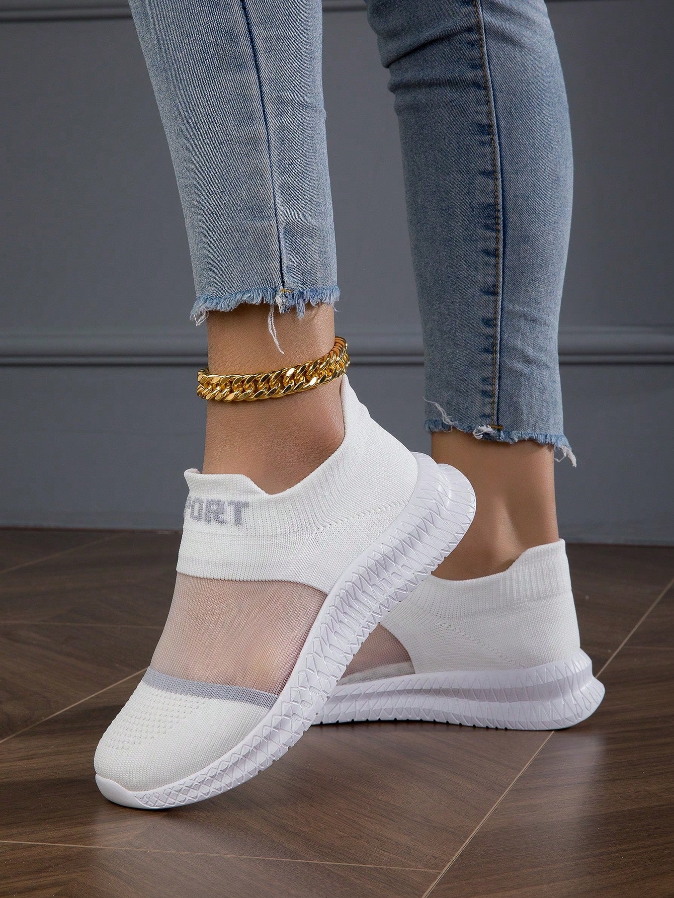 Shoes. Made for the active woman, these shoes feature a slip-on design and breathable materials to keep you cool during any workout. Stay on trend with the sleek letter graphic and elevate your performance."