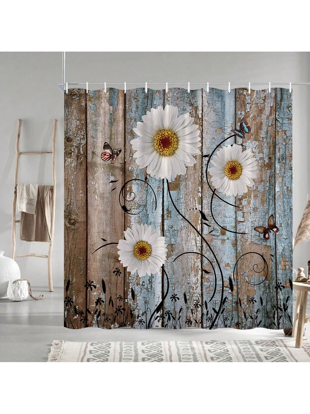 Rustic Daisy Floral Shower Curtain - Vintage Country Charm for Your Bathroom