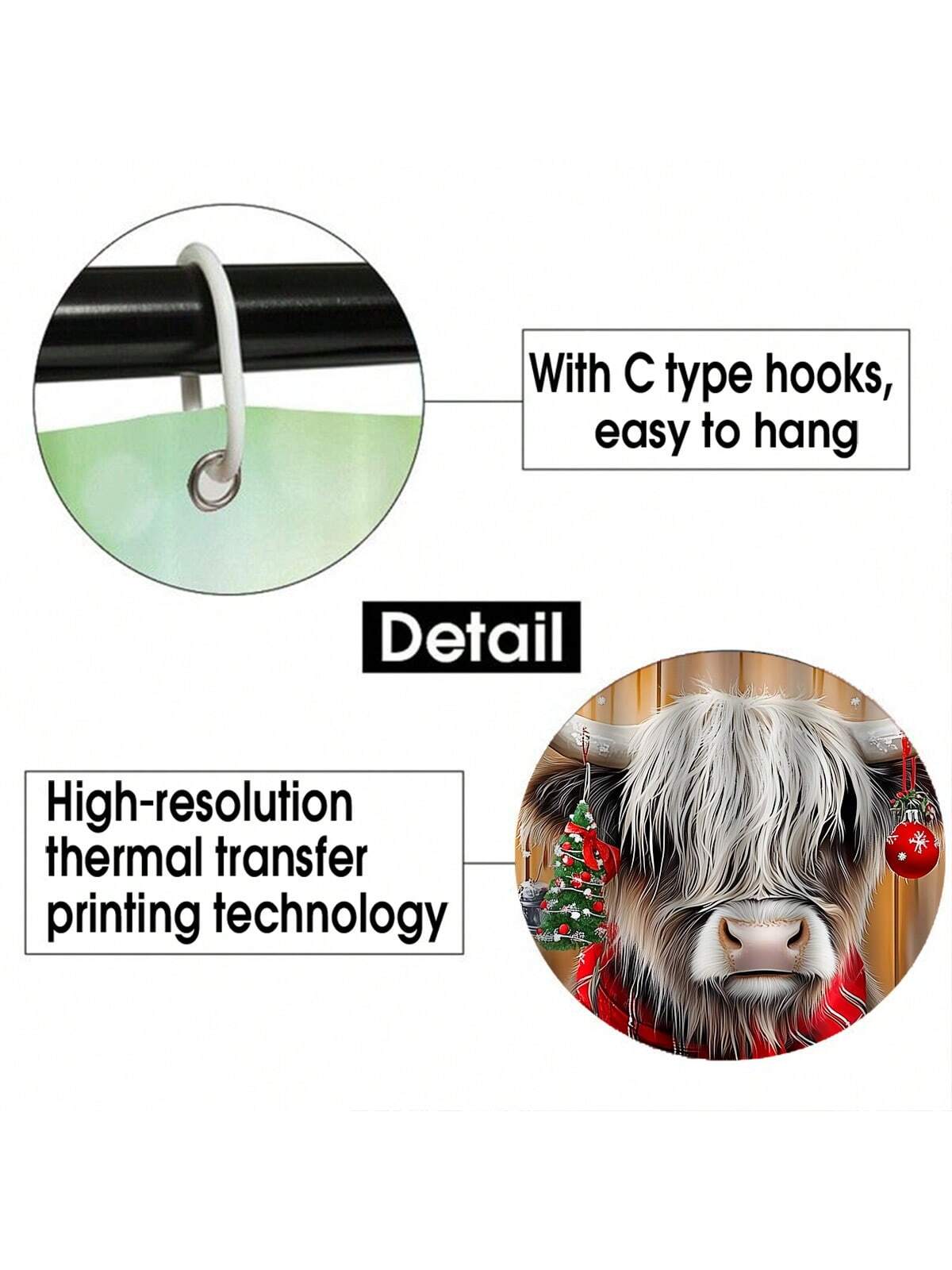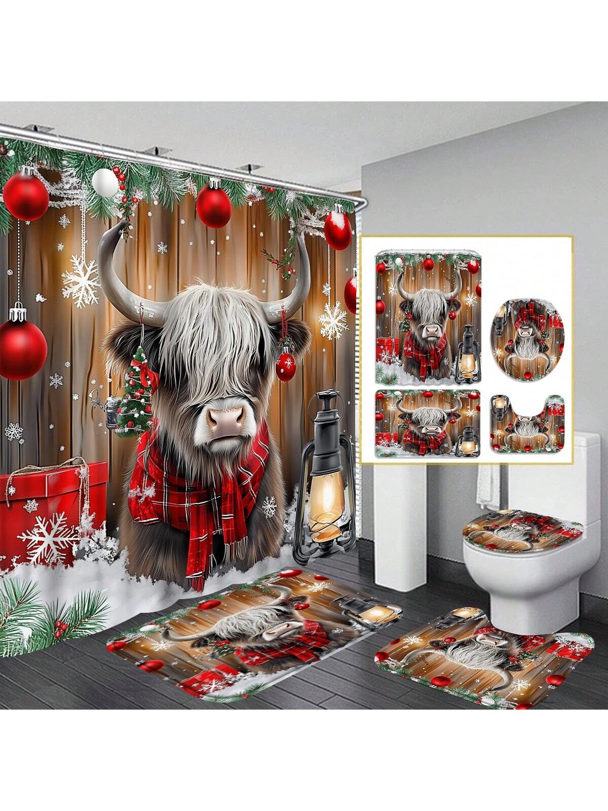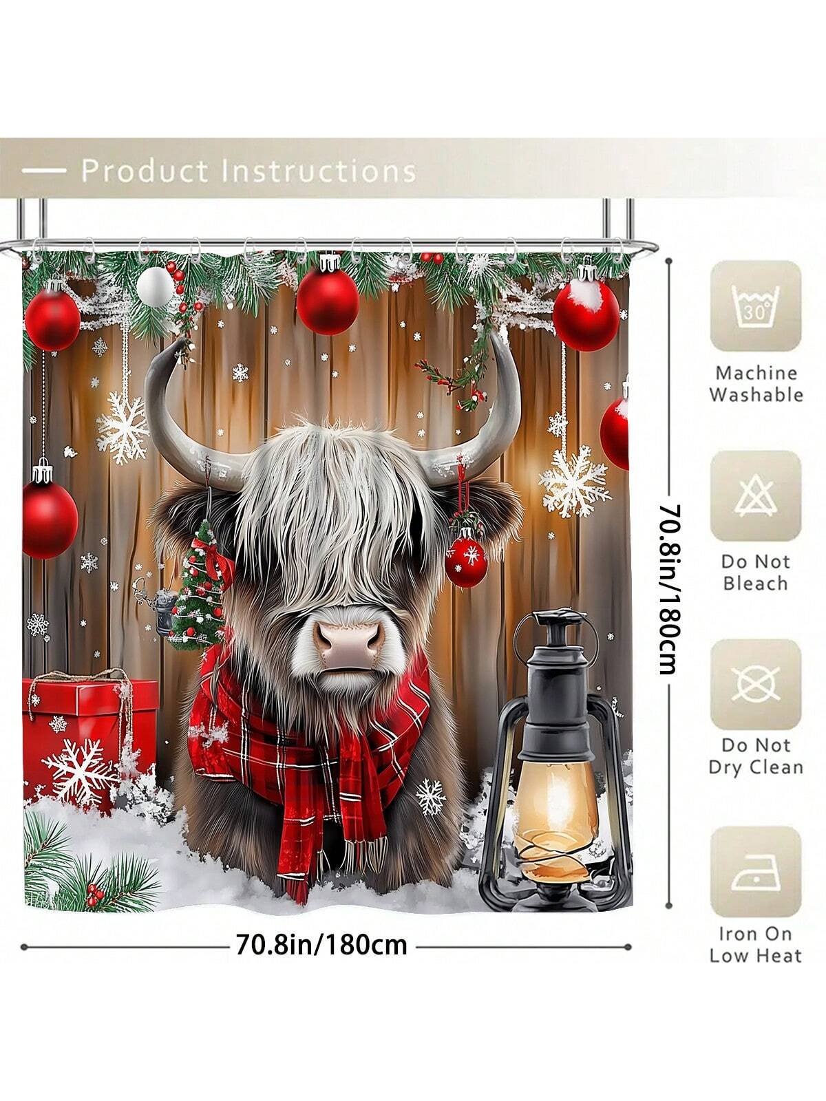 Rustic Farmhouse Christmas Shower Curtain Set - Waterproof Bathroom Decor with 12 Hooks Included