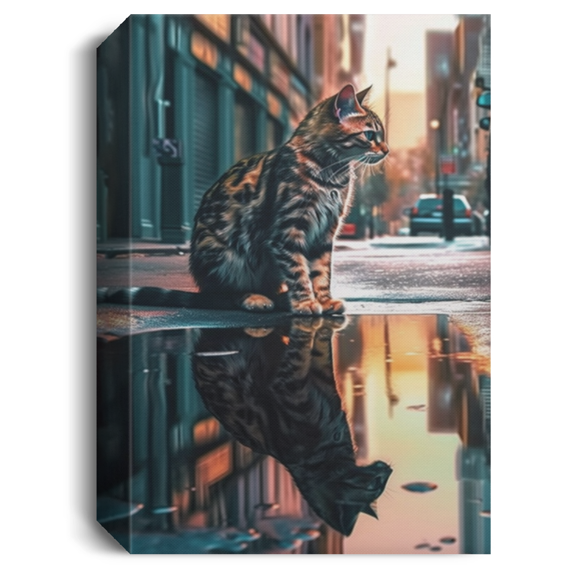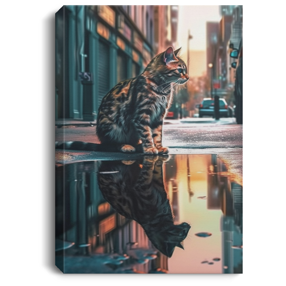 Sad Cat, A Cat Sit On Street Alone, After Rain, Cat With Wet Street Canvas