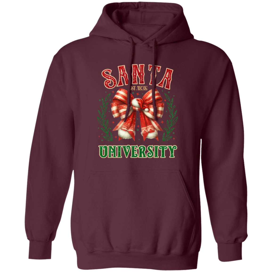 Santa University, Est 1836, Christmas Bow, Merry Christmas Christmas Pullover Hoodie