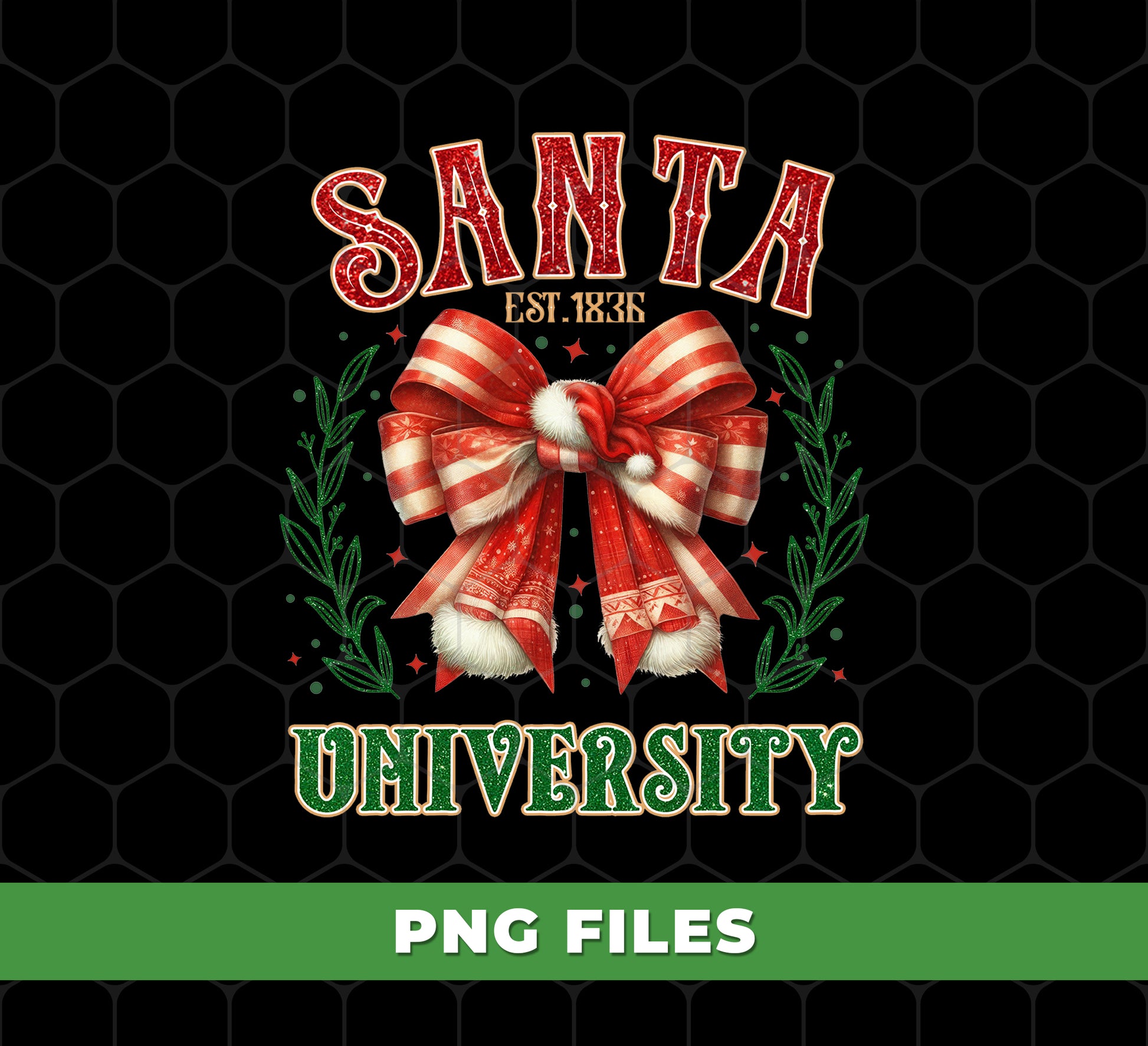 Santa University, Est 1836, Christmas Bow, Merry Christmas, Digital Files, Png Sublimation