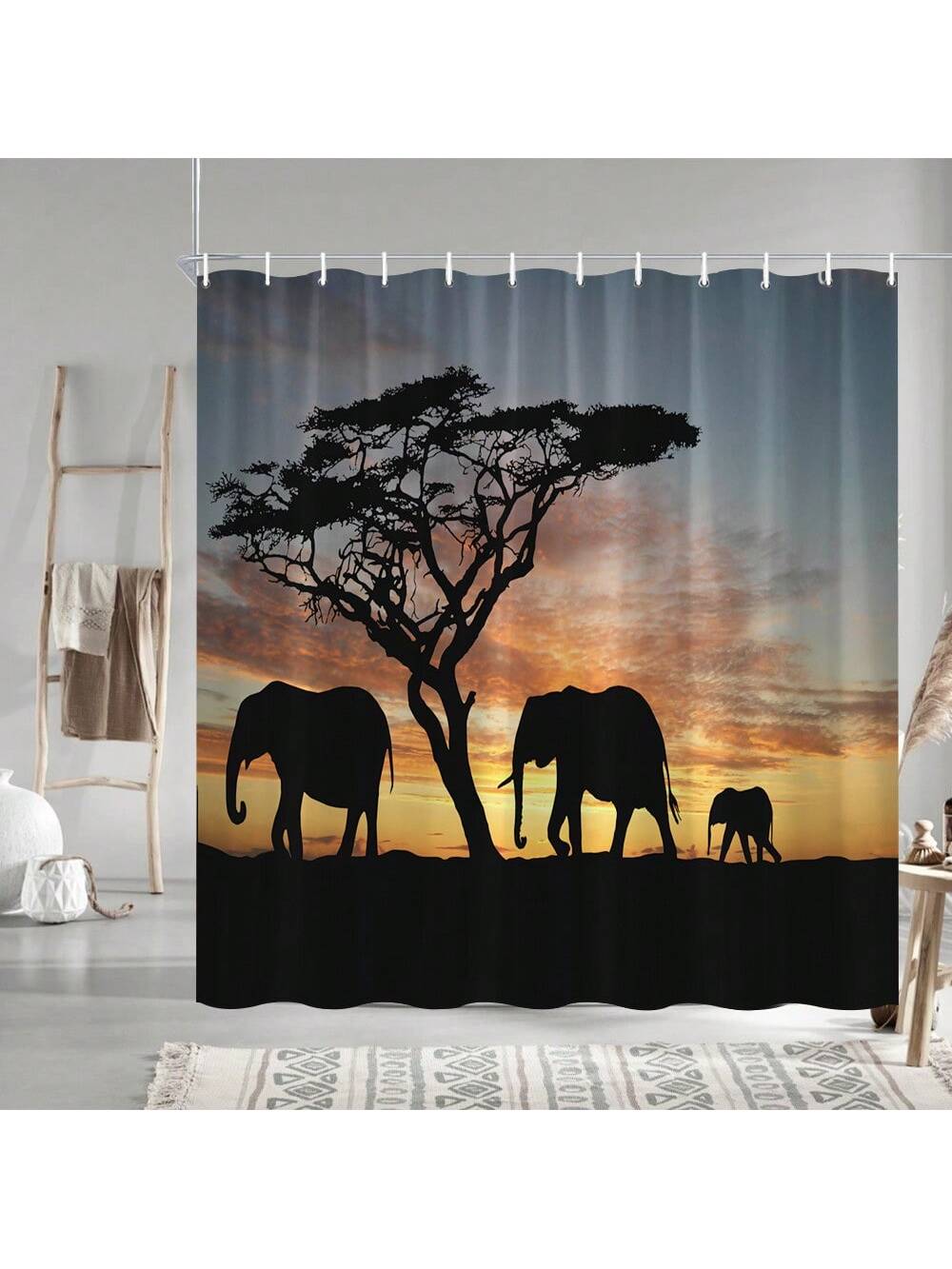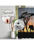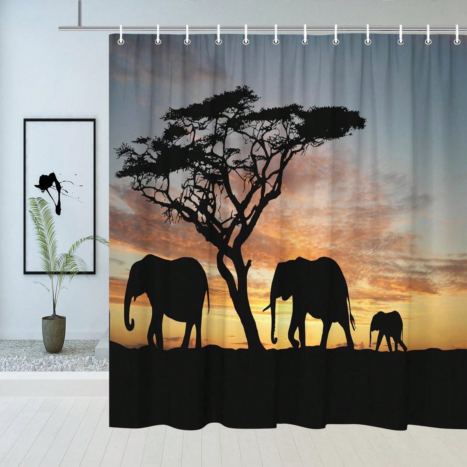 Serene Safari: Elephant Sunset Shower Curtain for a Nature-Inspired Bathroom