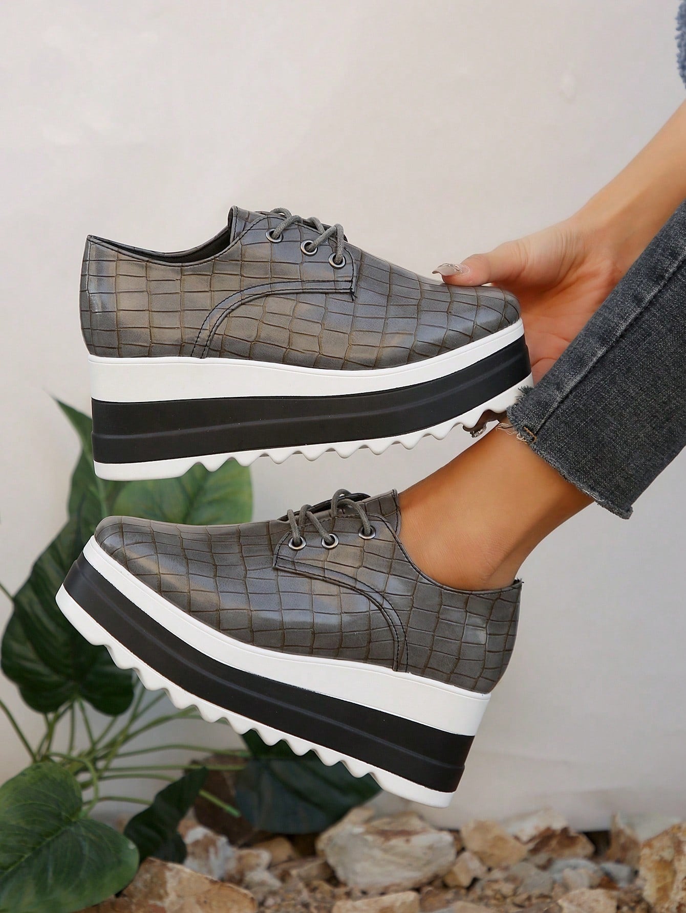 Serpentine Chic: Women's Platform Wedge Heels with Faux Snake Skin Pattern
