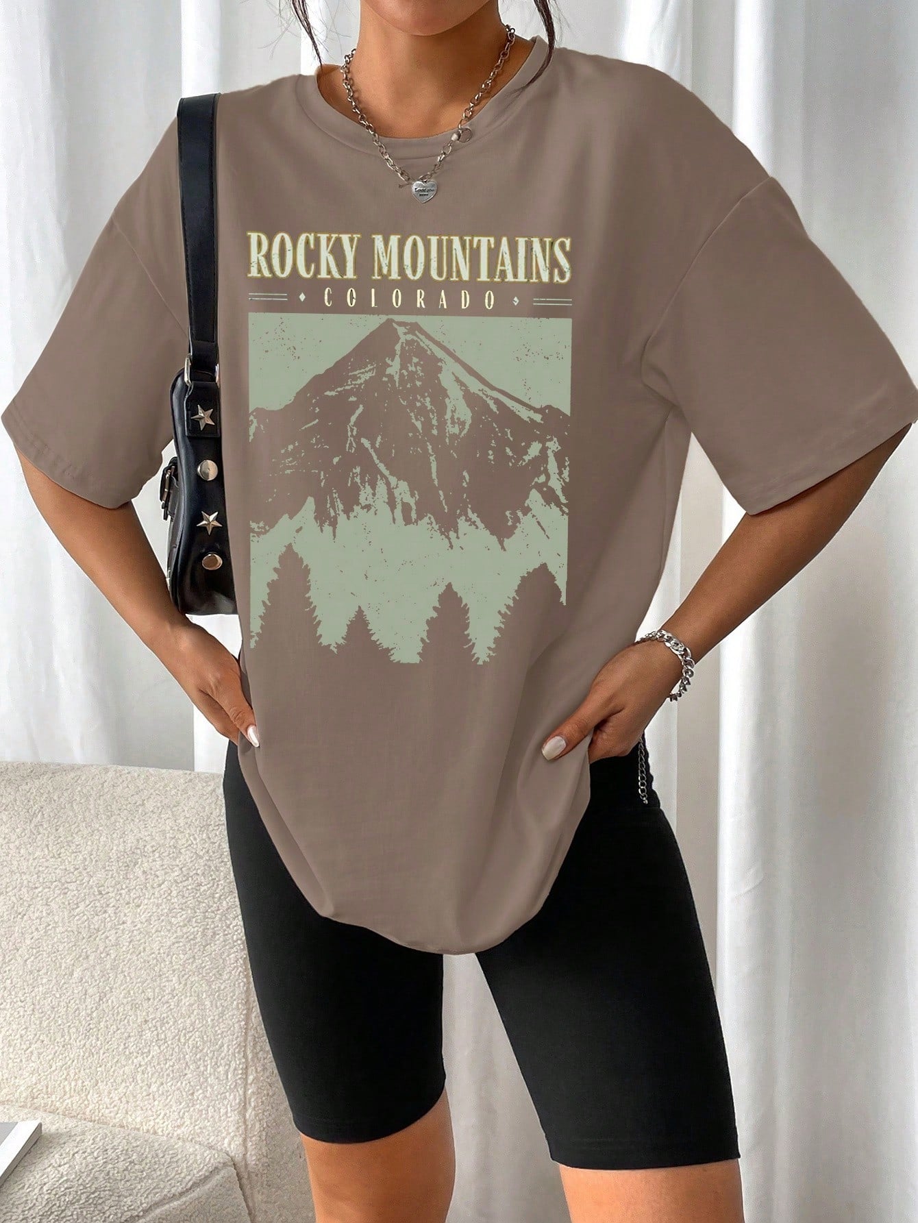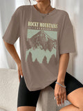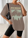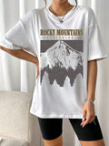 Women's Casual Loose Mountain Letter Print Short Sleeve T-Shirt Graphic Tees Women Tops