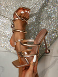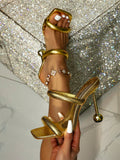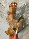 Shimmering Gold Pyramid Mules: Crystal-Studded High Heel Sandals for Summer Parties