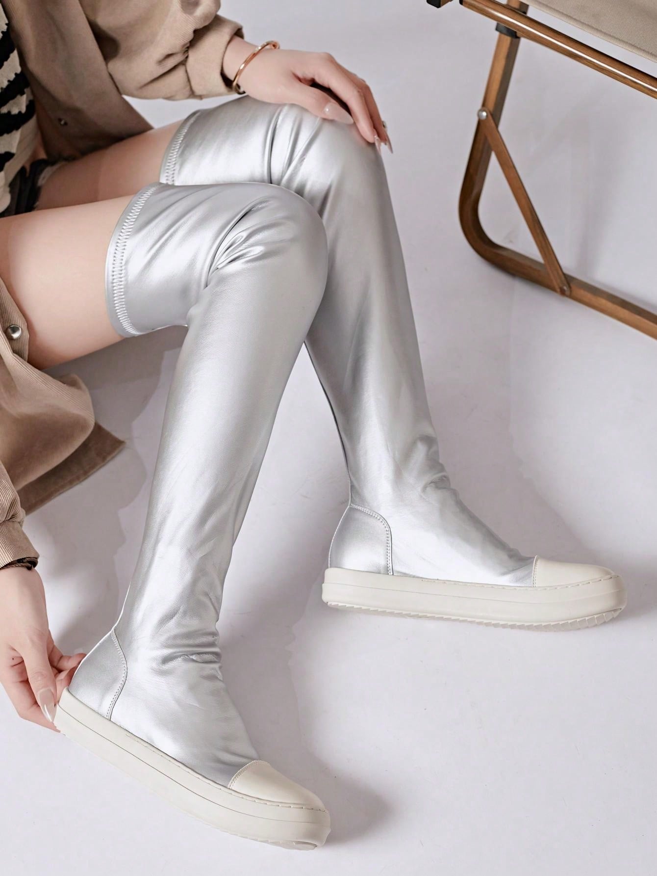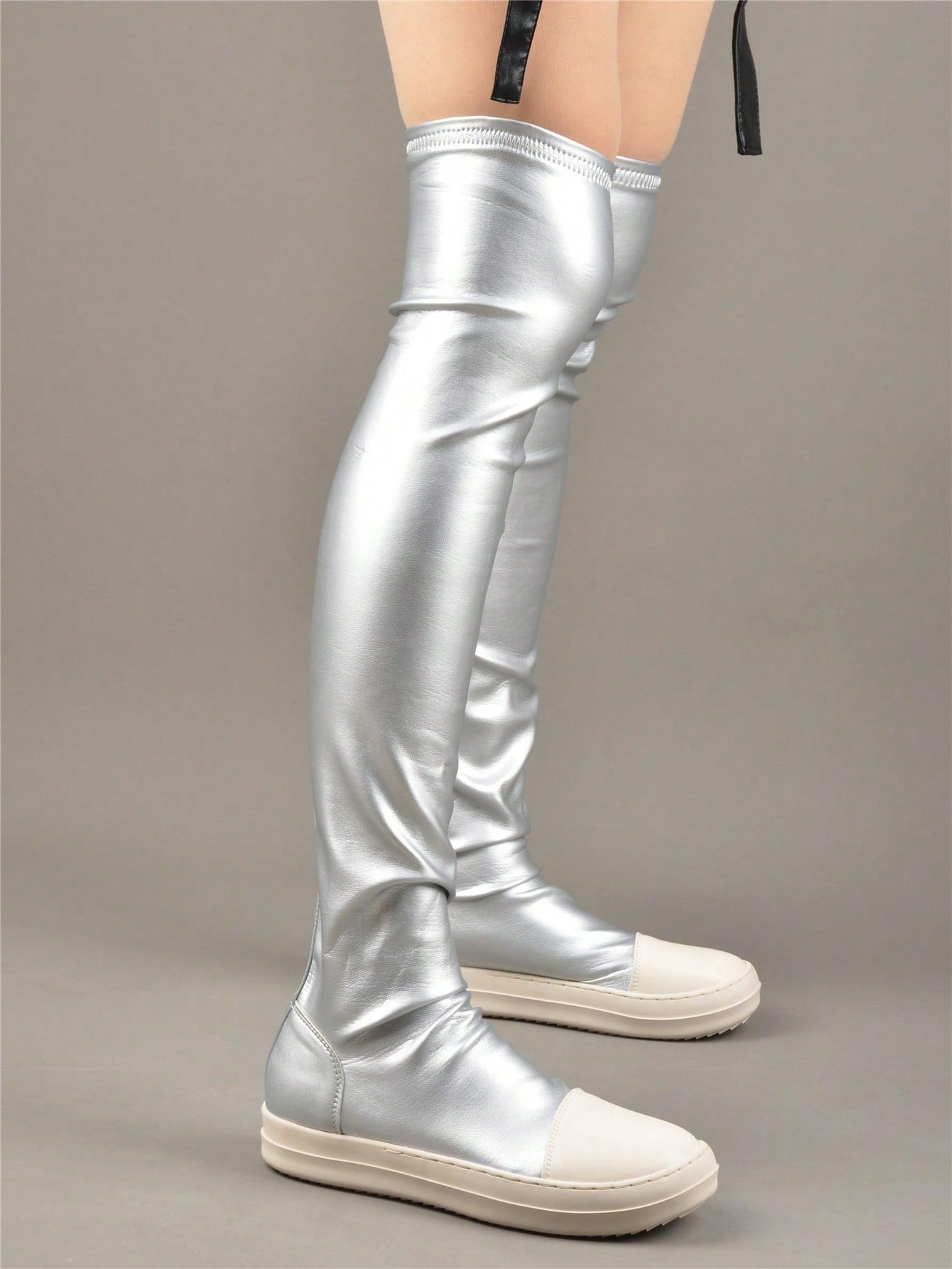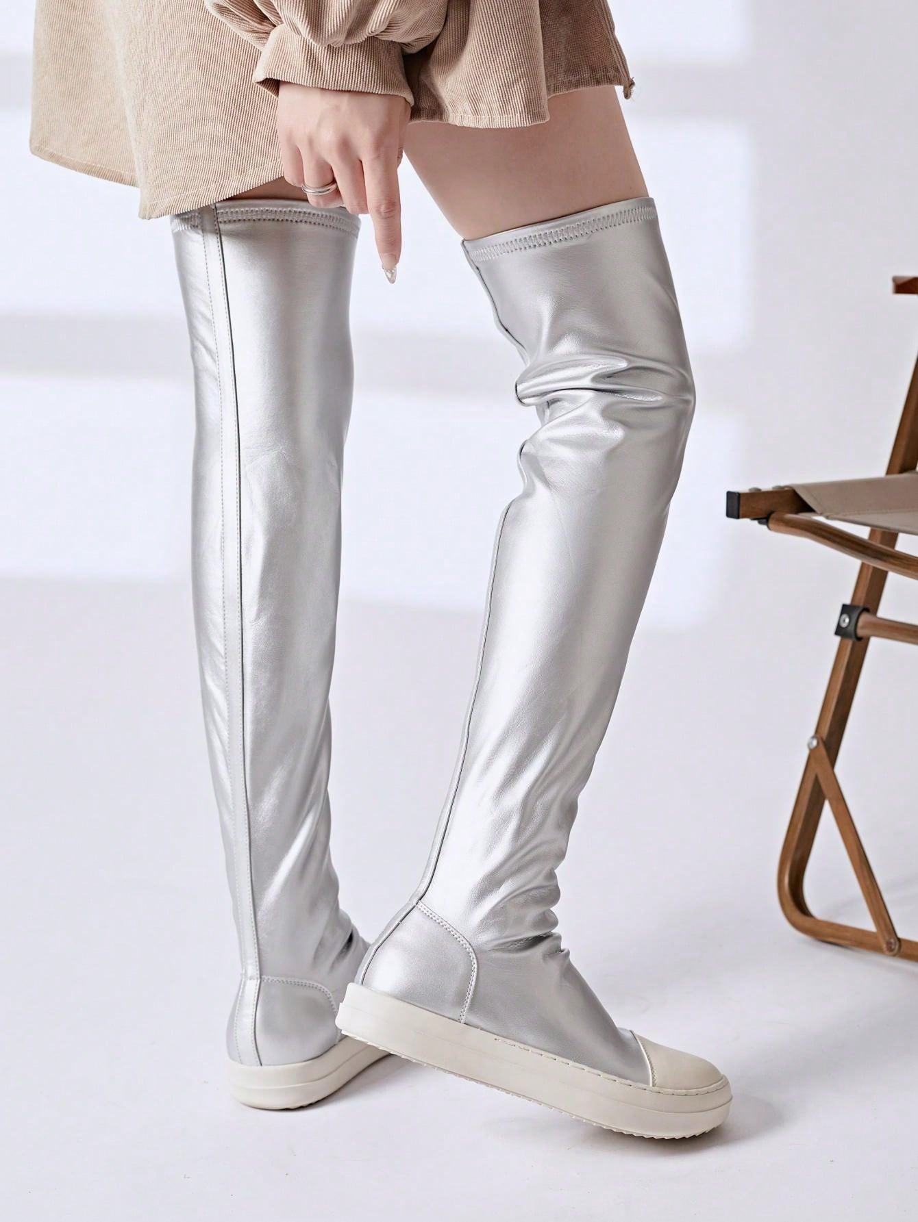 Shiny Silver Thigh High Boots: Elevate Your Casual Look with Style