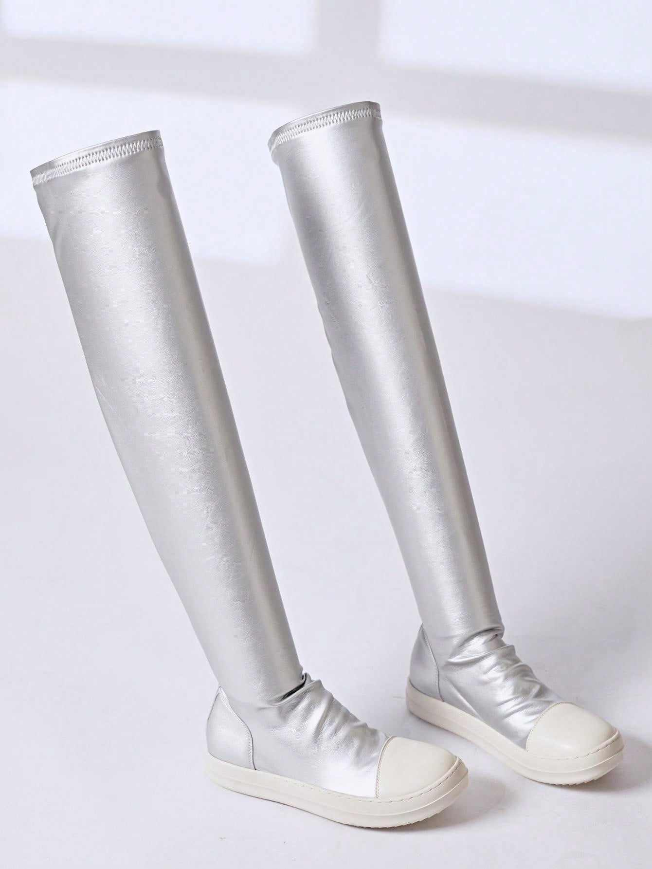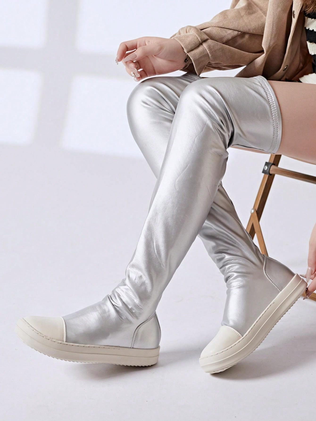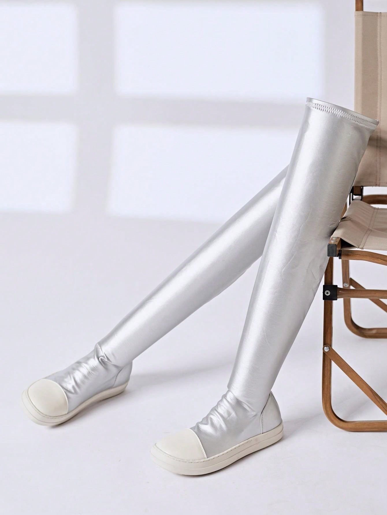 Shiny Silver Thigh High Boots: Elevate Your Casual Look with Style