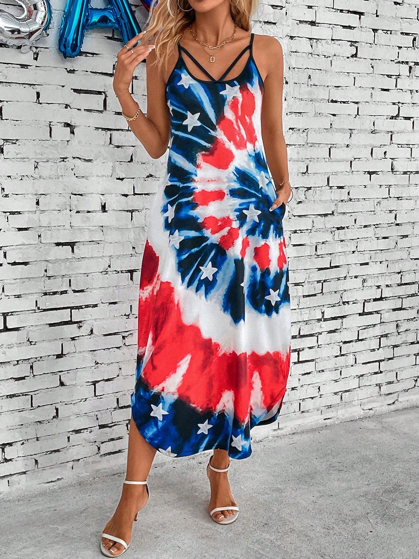 Show Your Patriotism in Style with the American Flag Printed Cami Dress - Perfect for Independence Day!