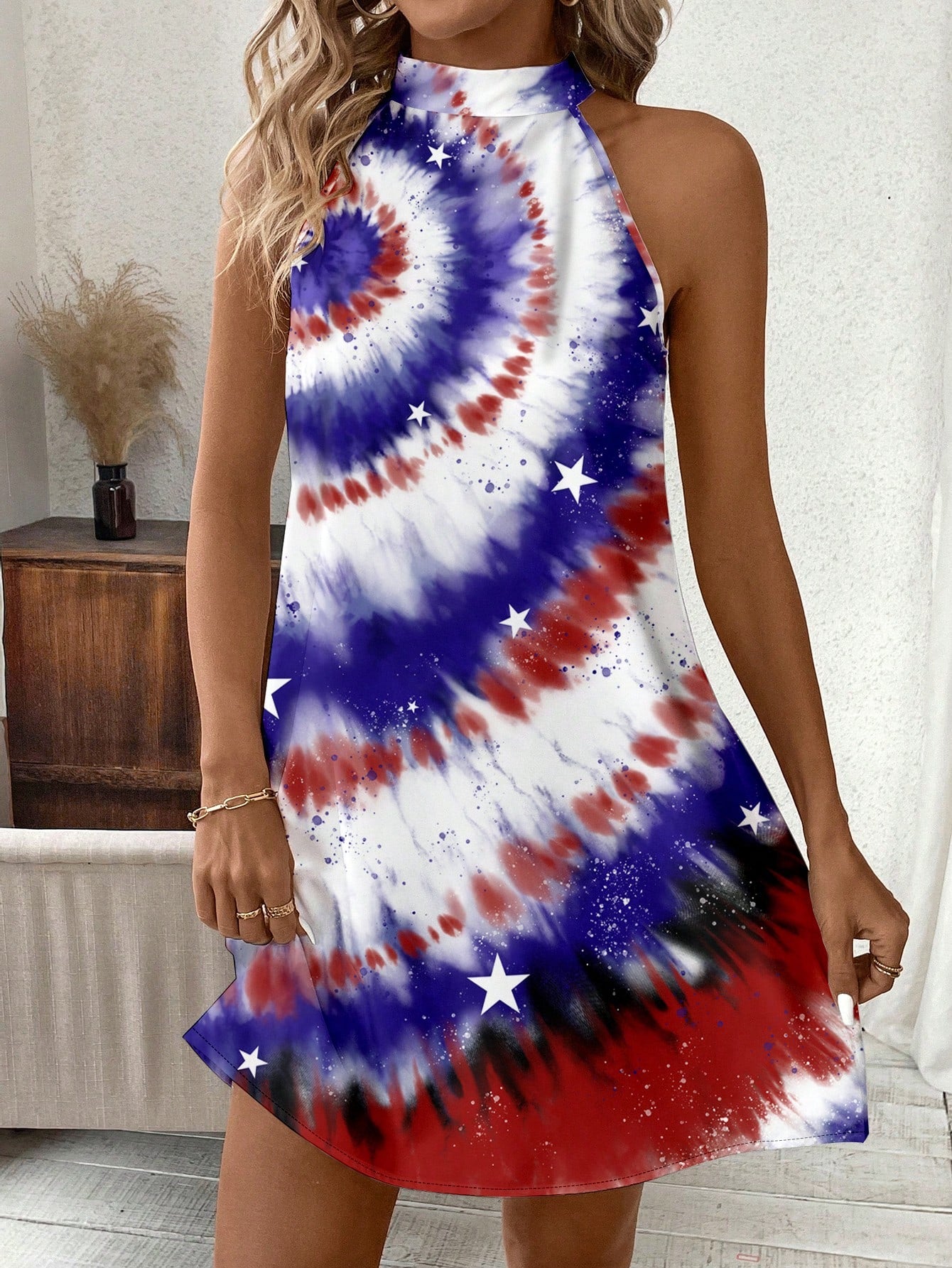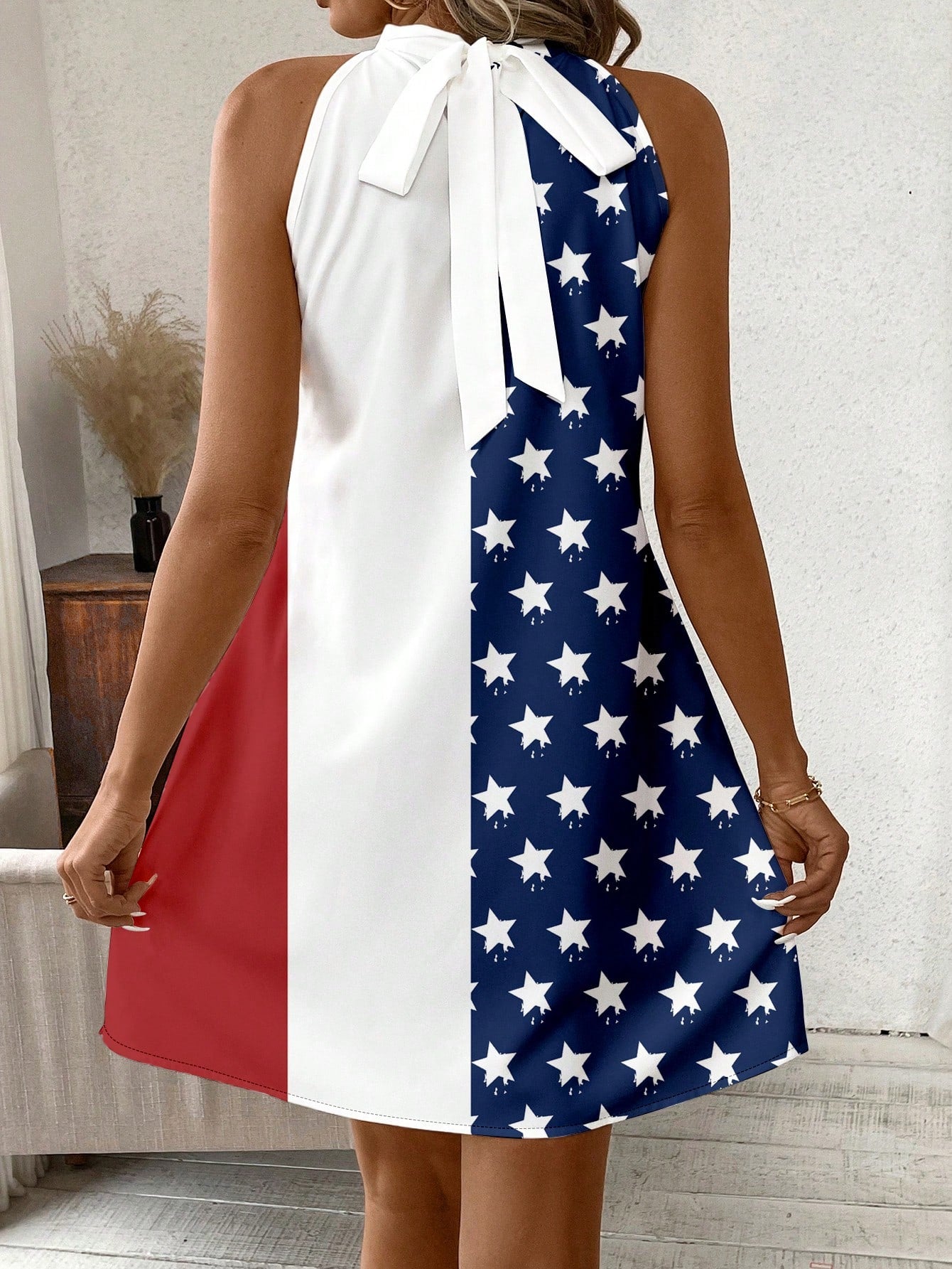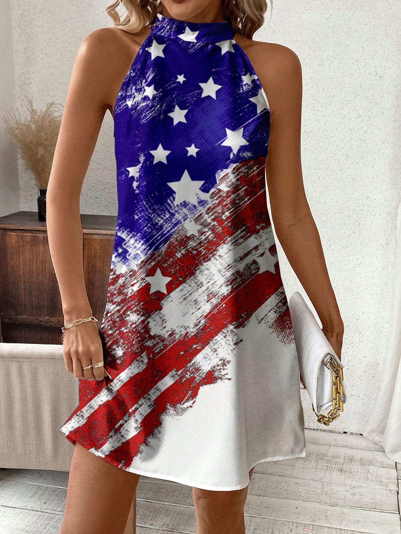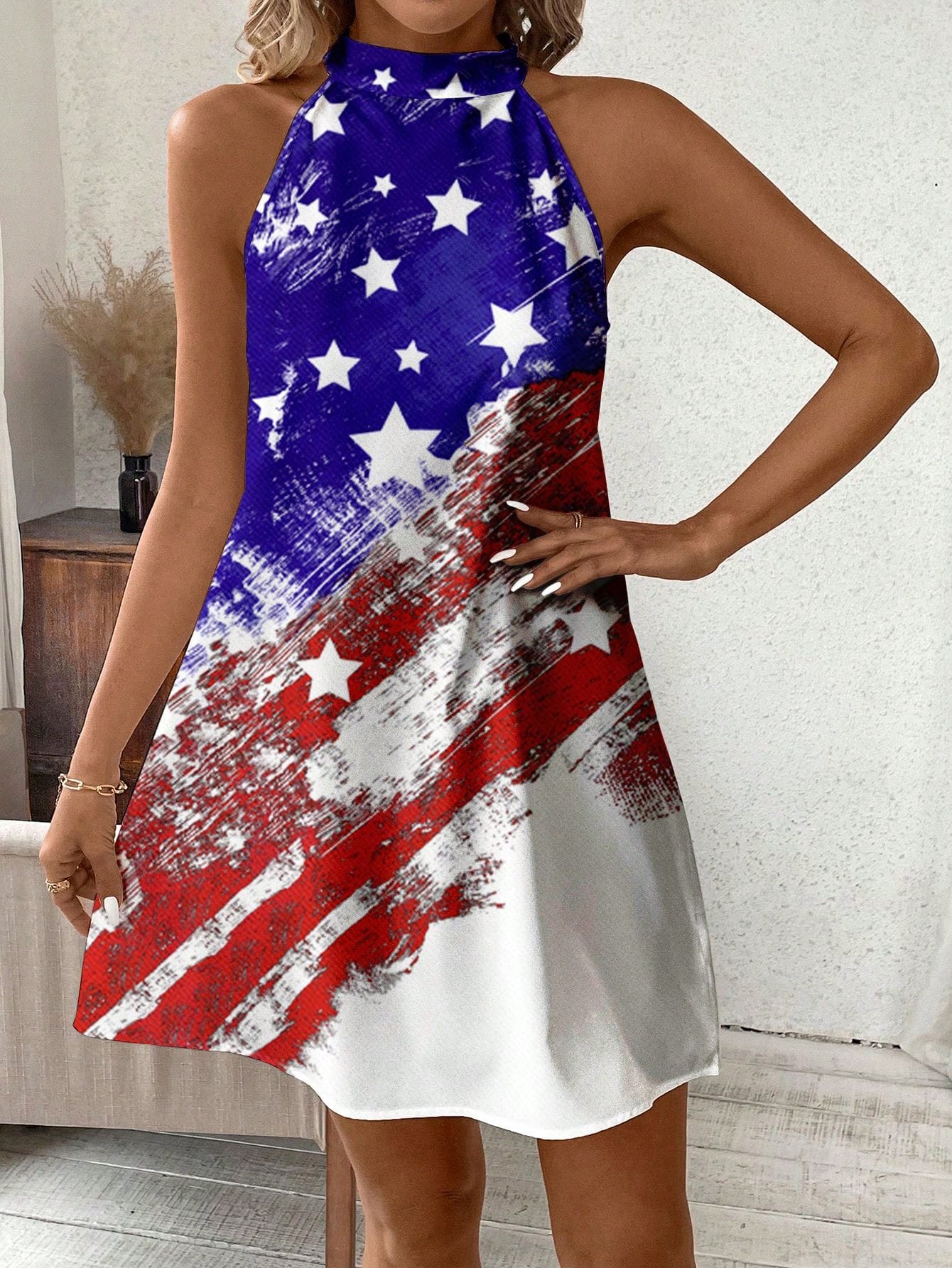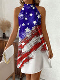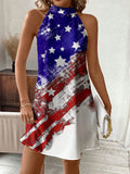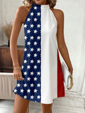 Show Your Patriotism in Style with the Classic American Flag Halterneck Dress