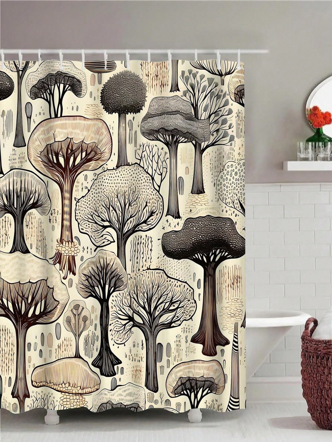 Simple Tree Print Waterproof Bathroom Shower Curtain for Modern Decor