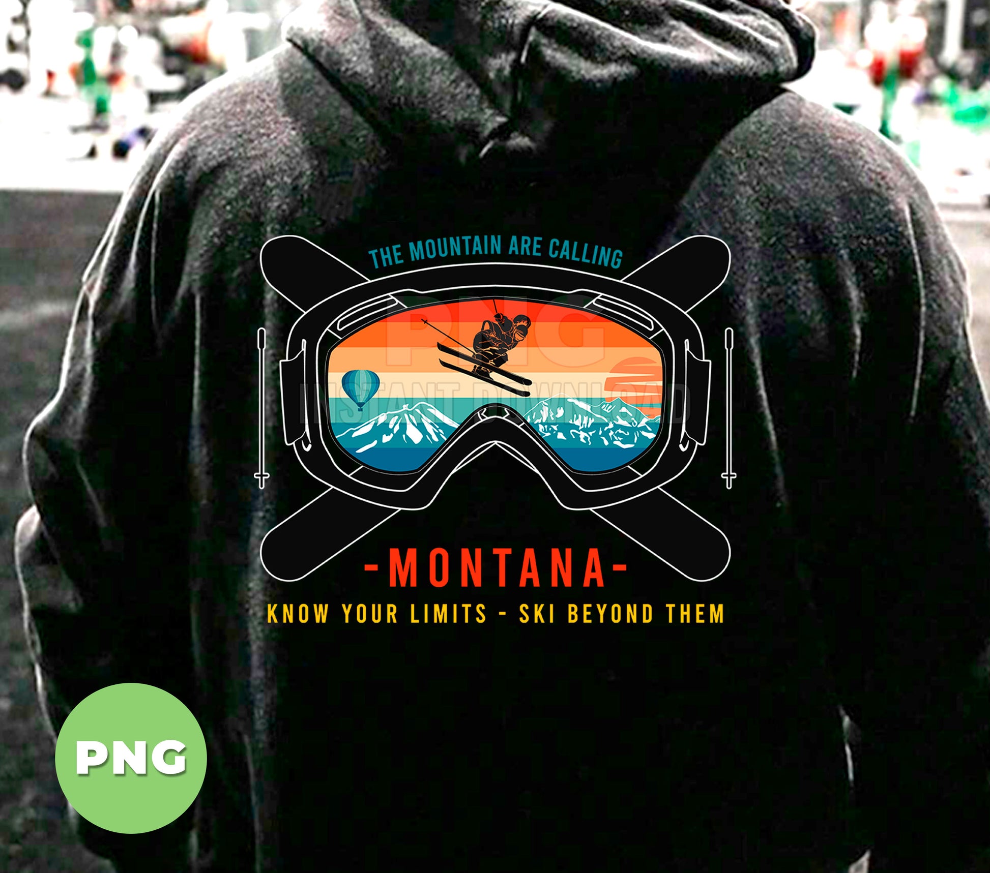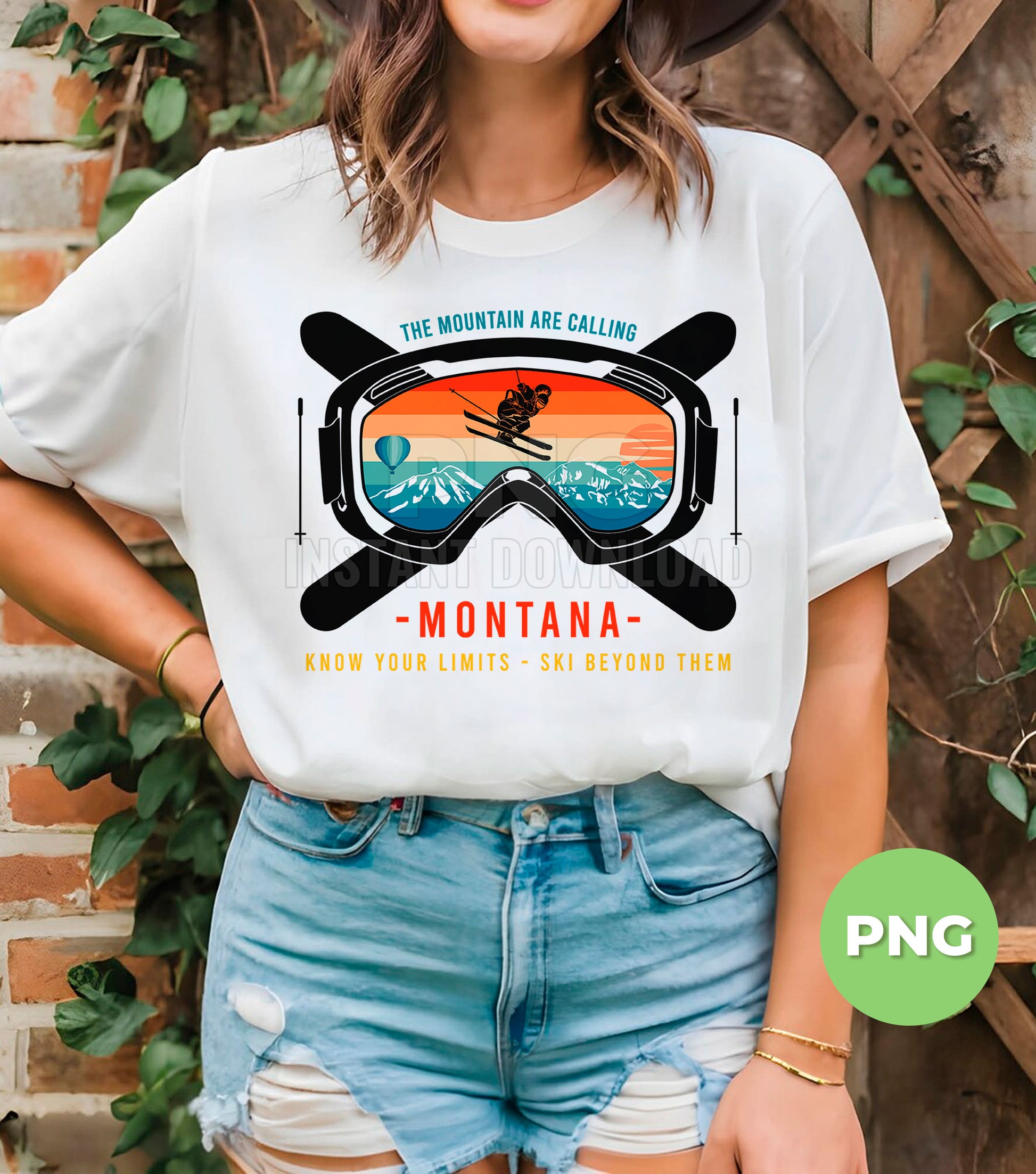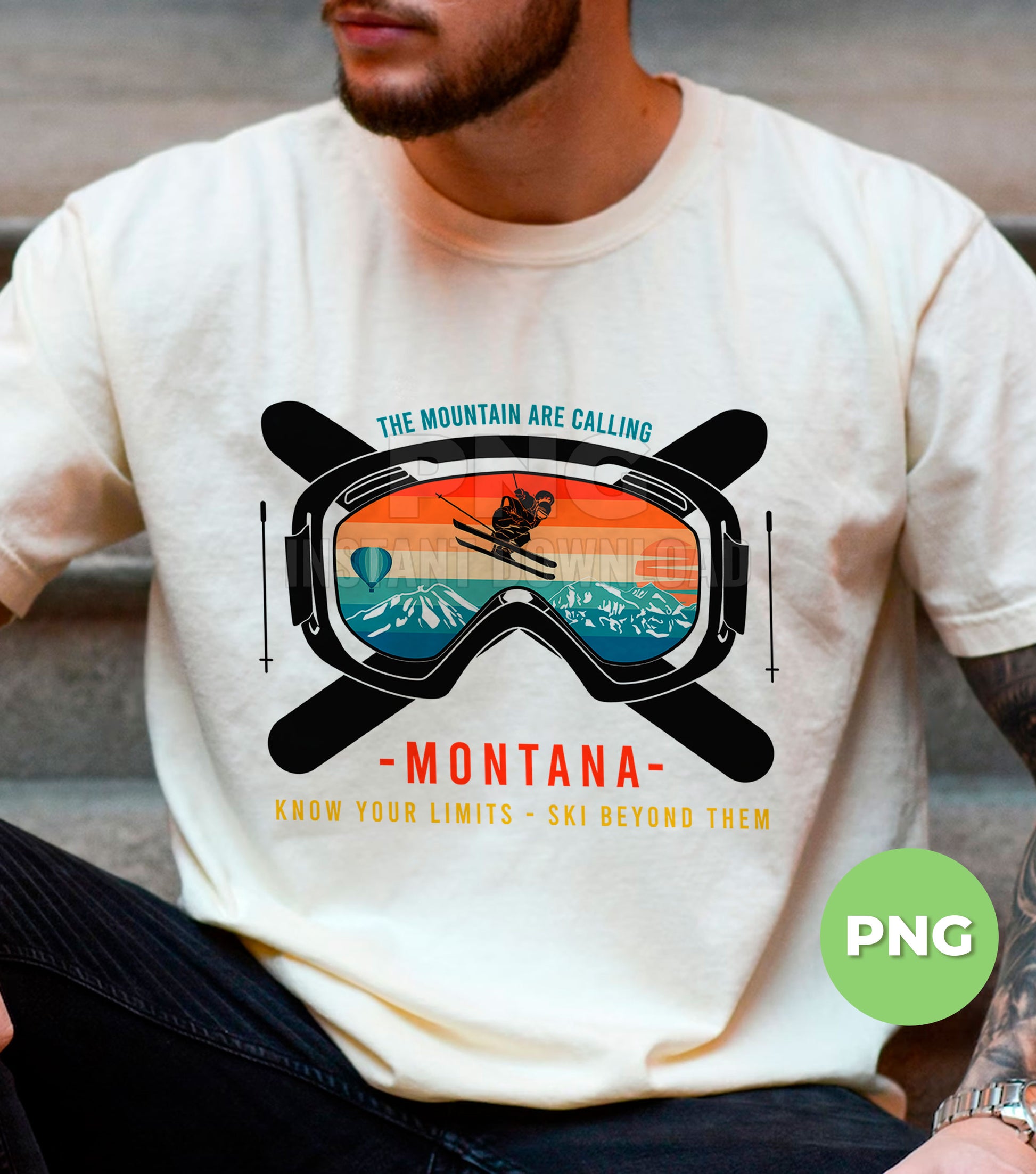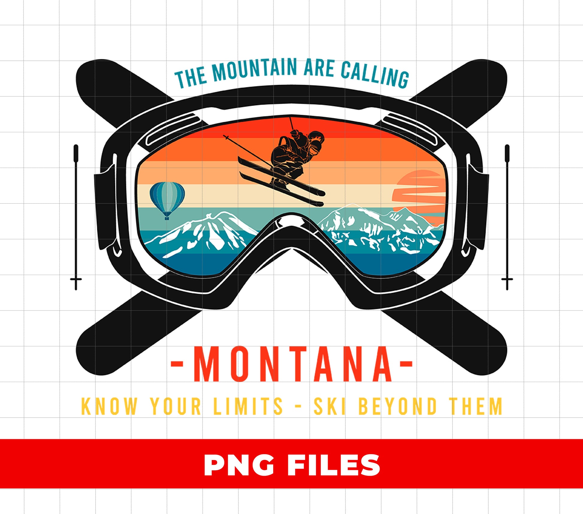 Skiing PNG, Montana Ski Goggles Clipart, Retro Snowboard Winter Sports Sublimation, Extreme Ski Jump Sunset Mountains Digital Download