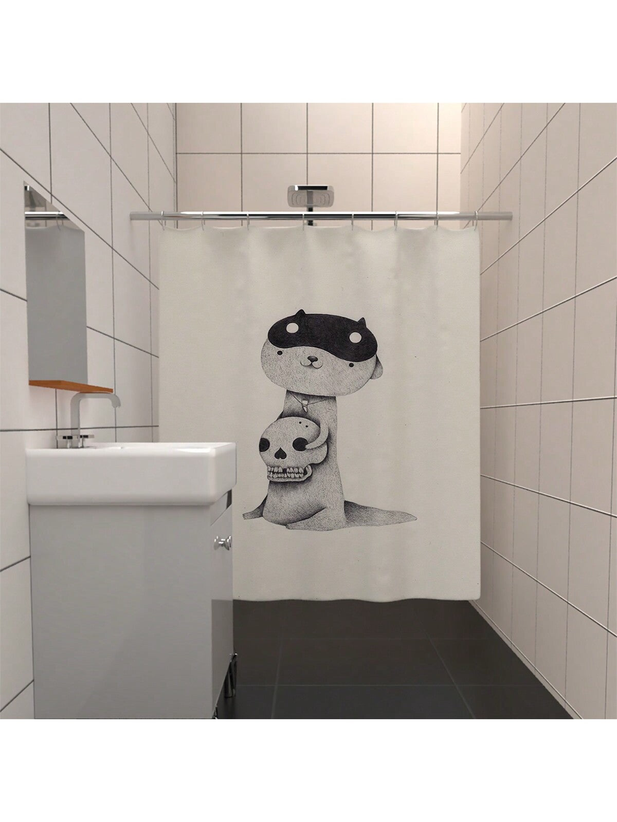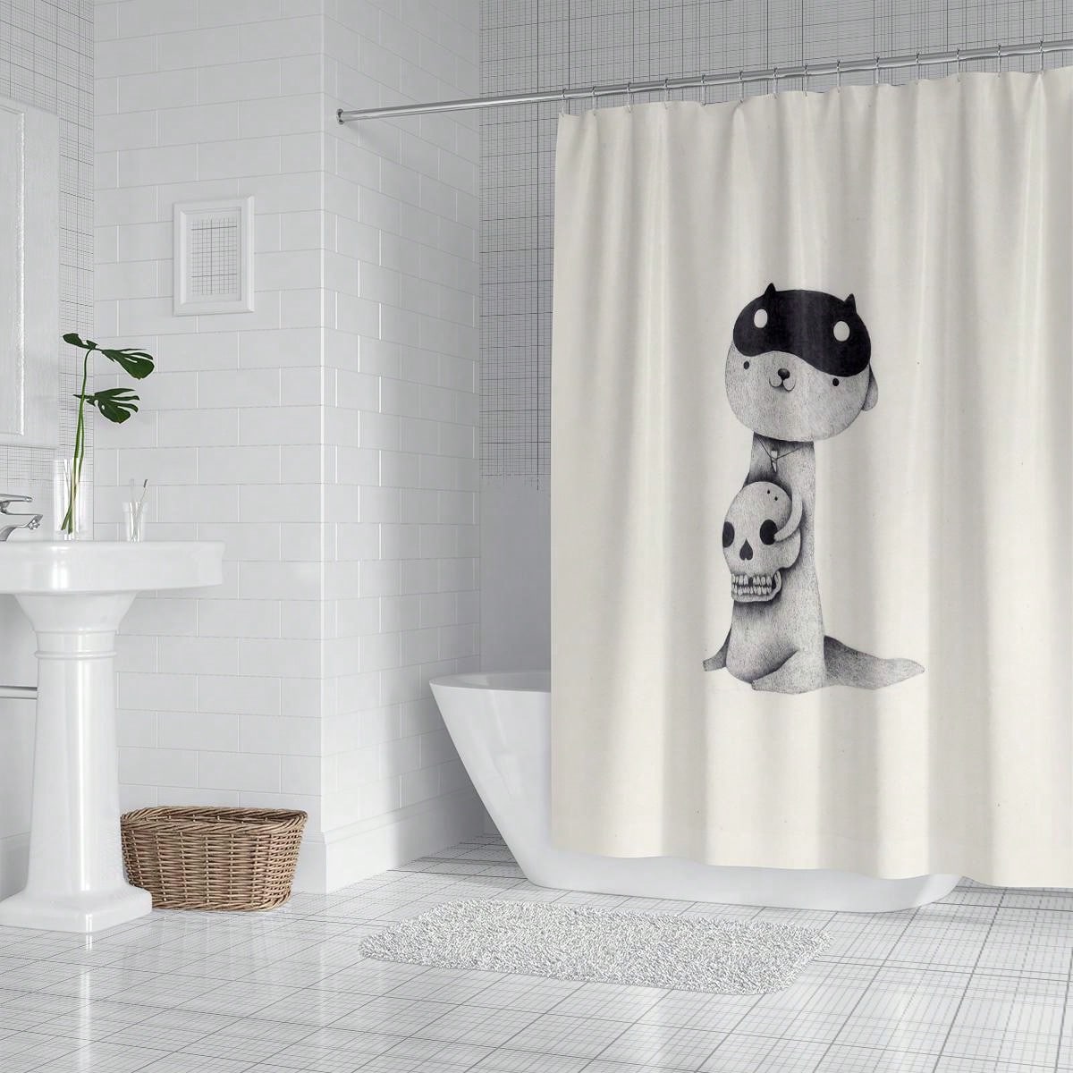Skull Hugging Little Cutie Shower Curtain: Waterproof, Anti-Mildew, Thickened Hook Hanging for Privacy Protection