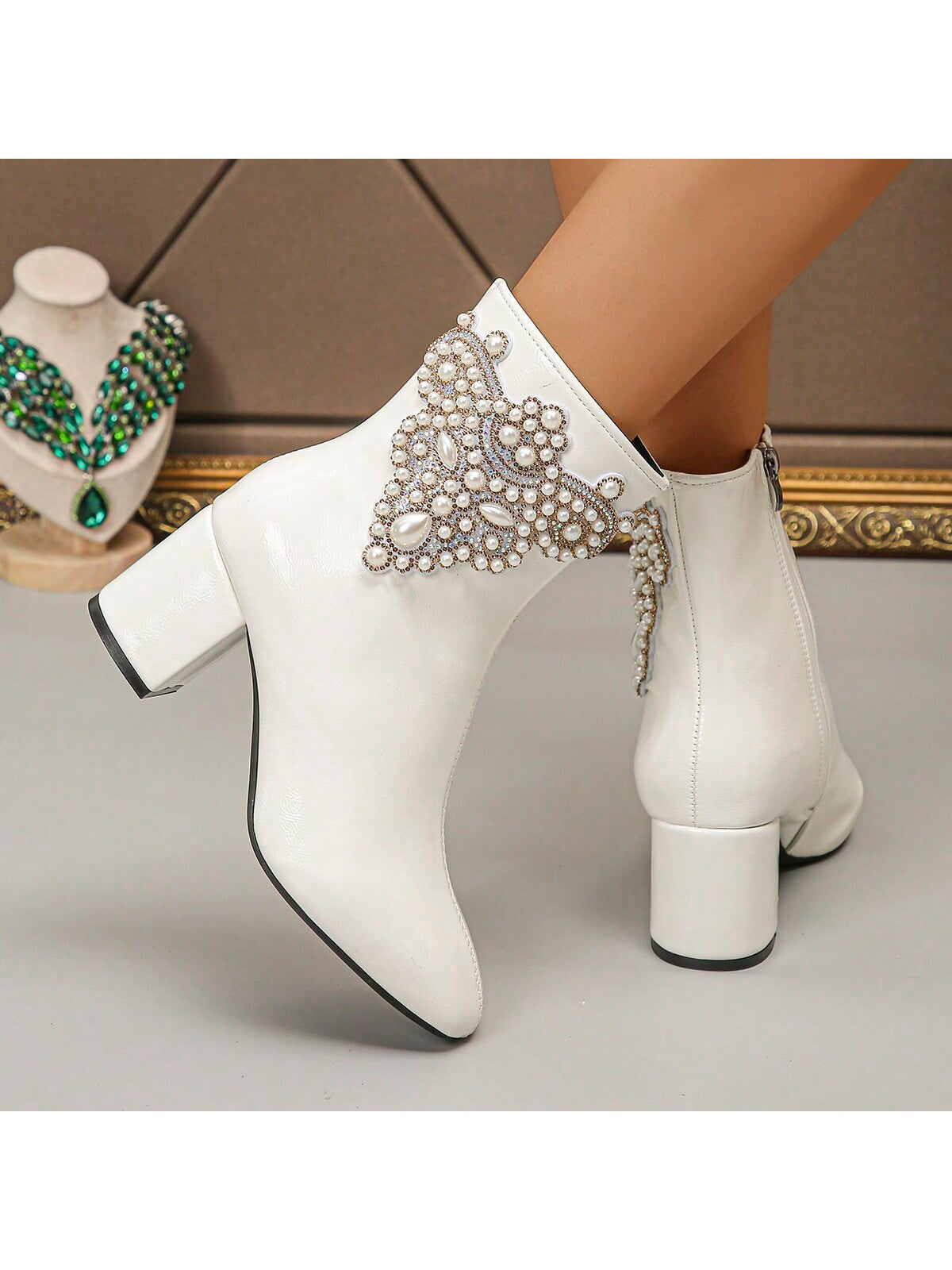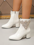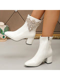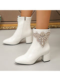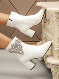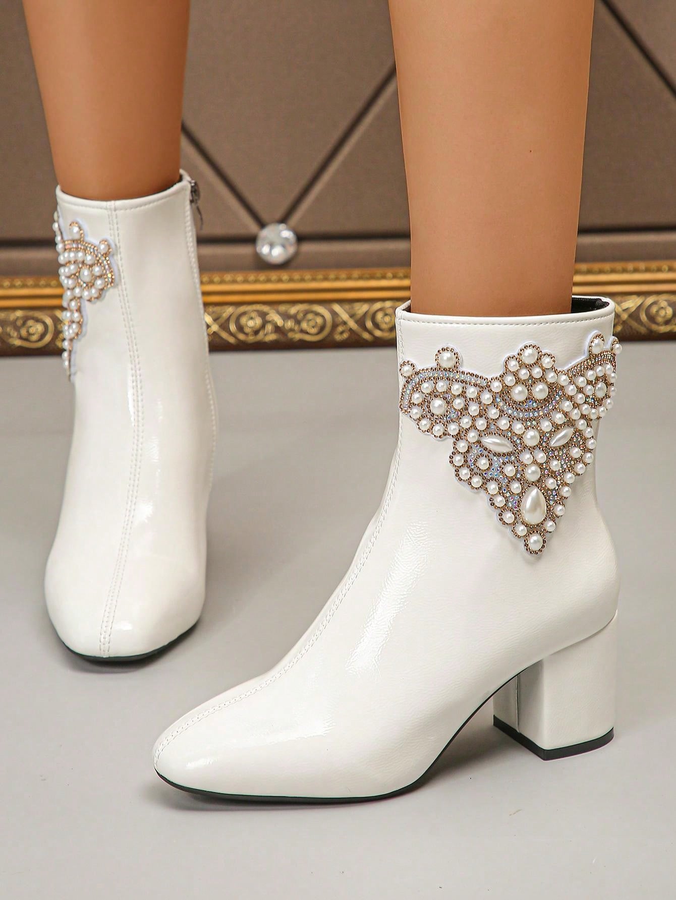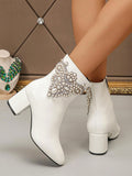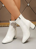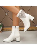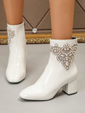 Sleek and Chic: Women's Chunky Heel Glossy Leather Short Boots with Slim Zipper
