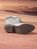 Elevate your fall/winter fashion with our sleek and chic silver floral sequin tassel trim knight boots. Embrace the season in style and comfort while making a statement with the intricate floral design and added tassel details. Perfect for keeping you on trend and warm all season long.