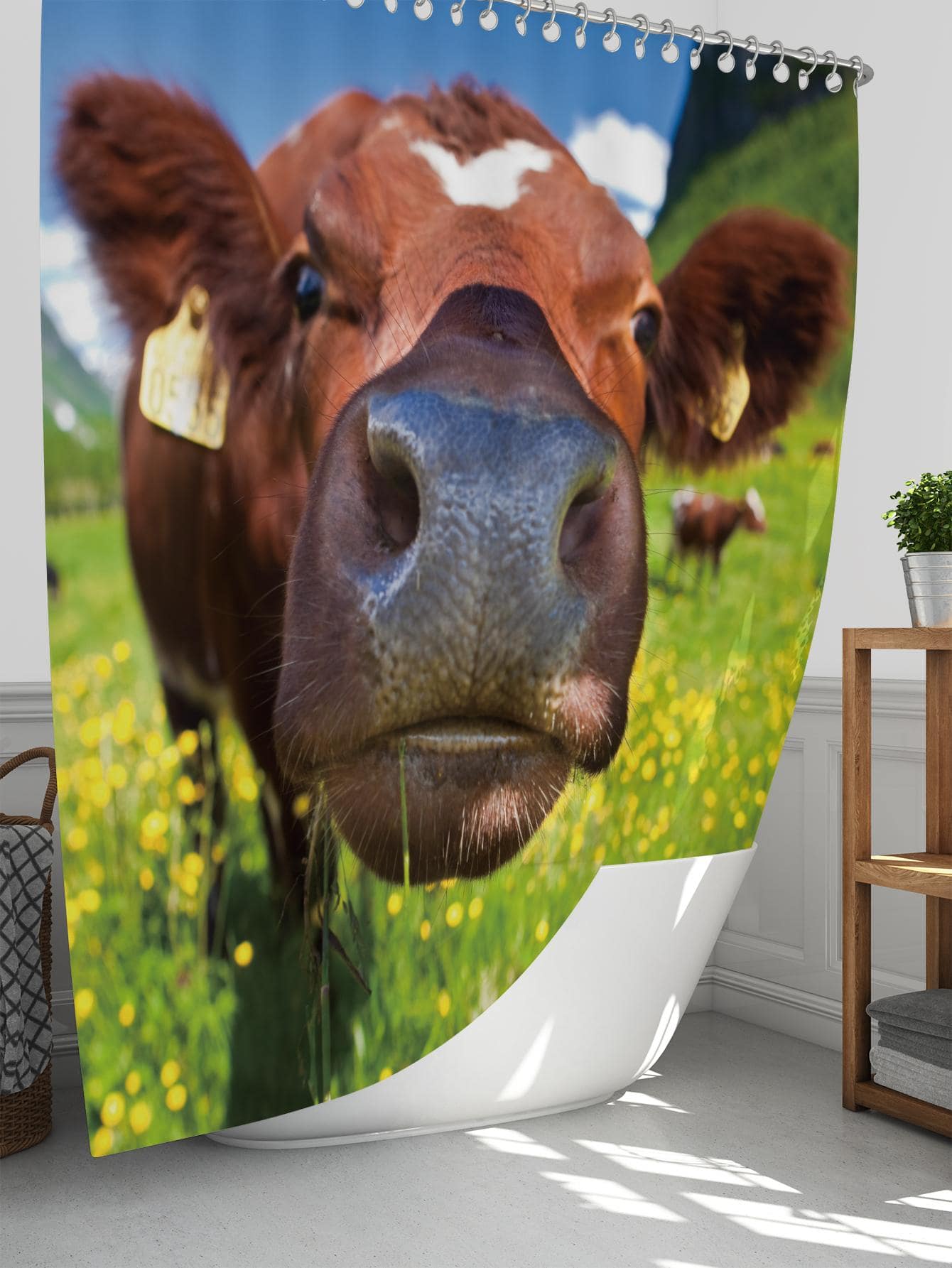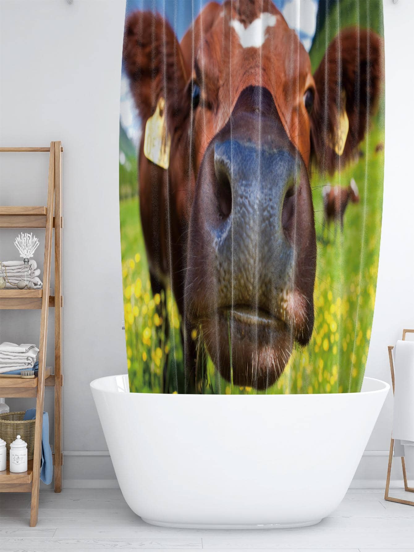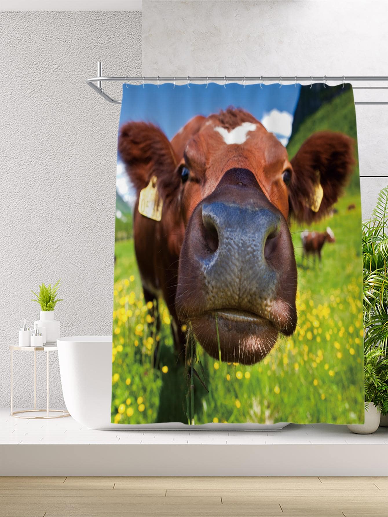 Sleek and Stylish Cattle Pattern Shower Curtain: Waterproof Polyester Design for Modern Bathrooms
