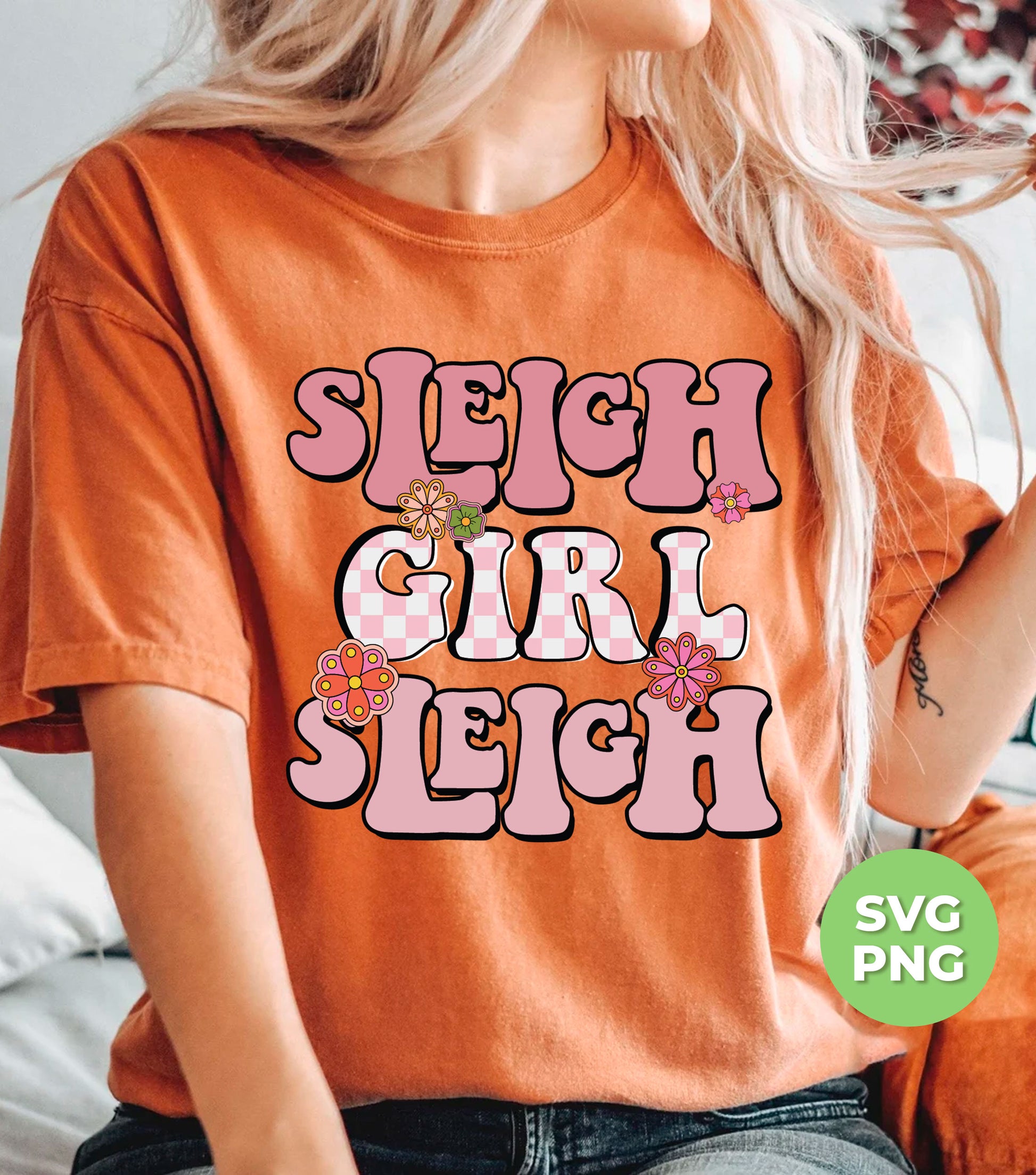 Sleigh Girl Sleigh, Pinky Sleigh, Groovy Sleigh, Pink Christmas, Digital Files, Png Sublimation