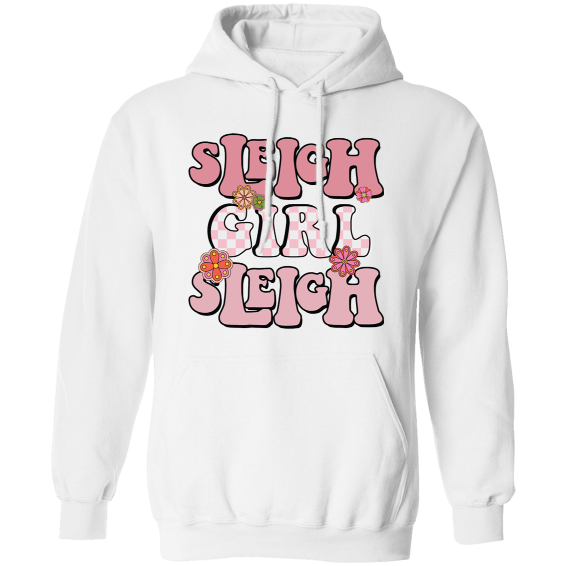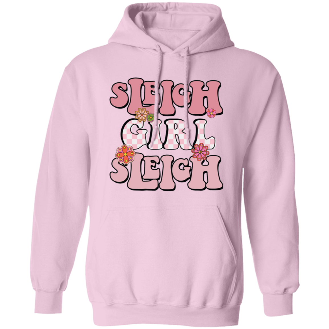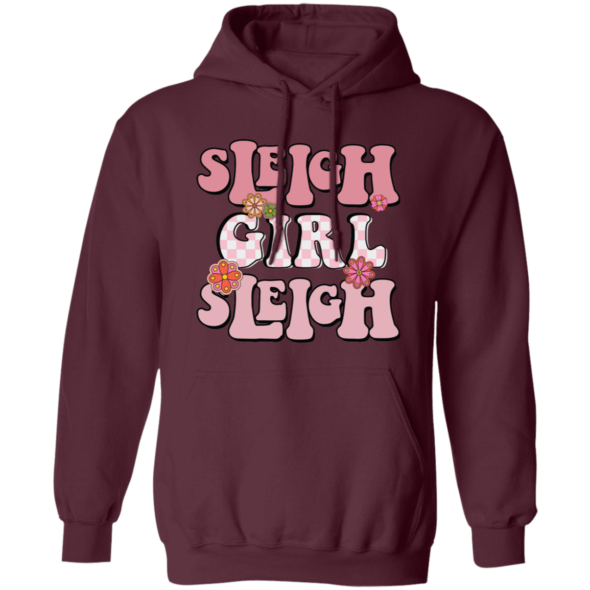 Sleigh Girl Sleigh, Pinky Sleigh, Groovy Sleigh, Pink Christmas Pullover Hoodie