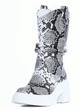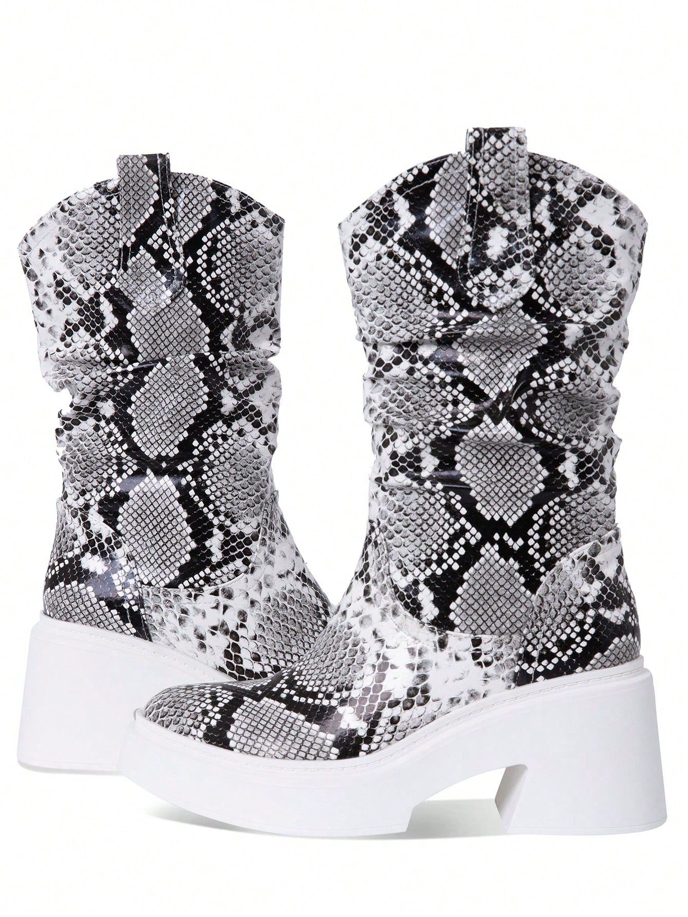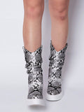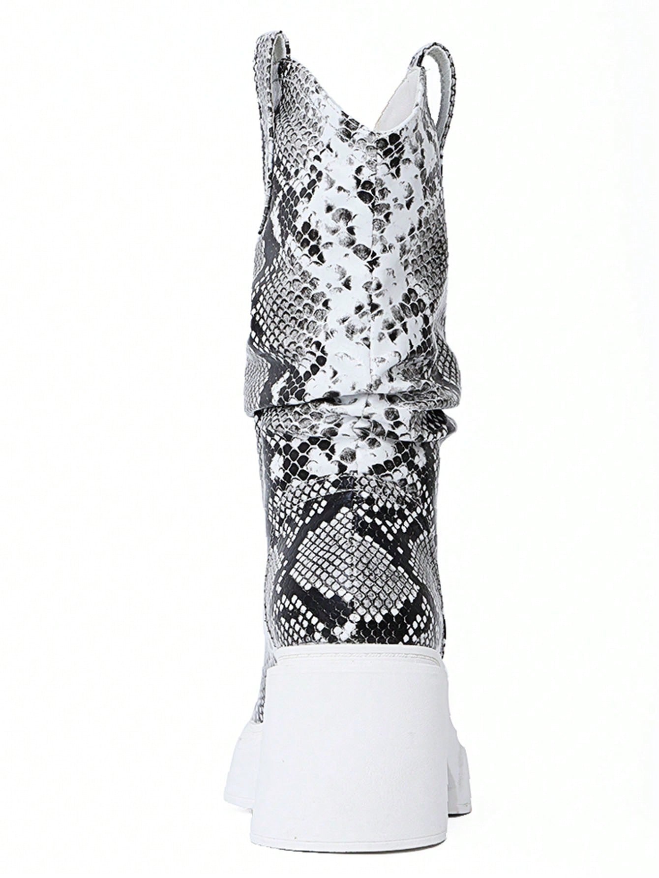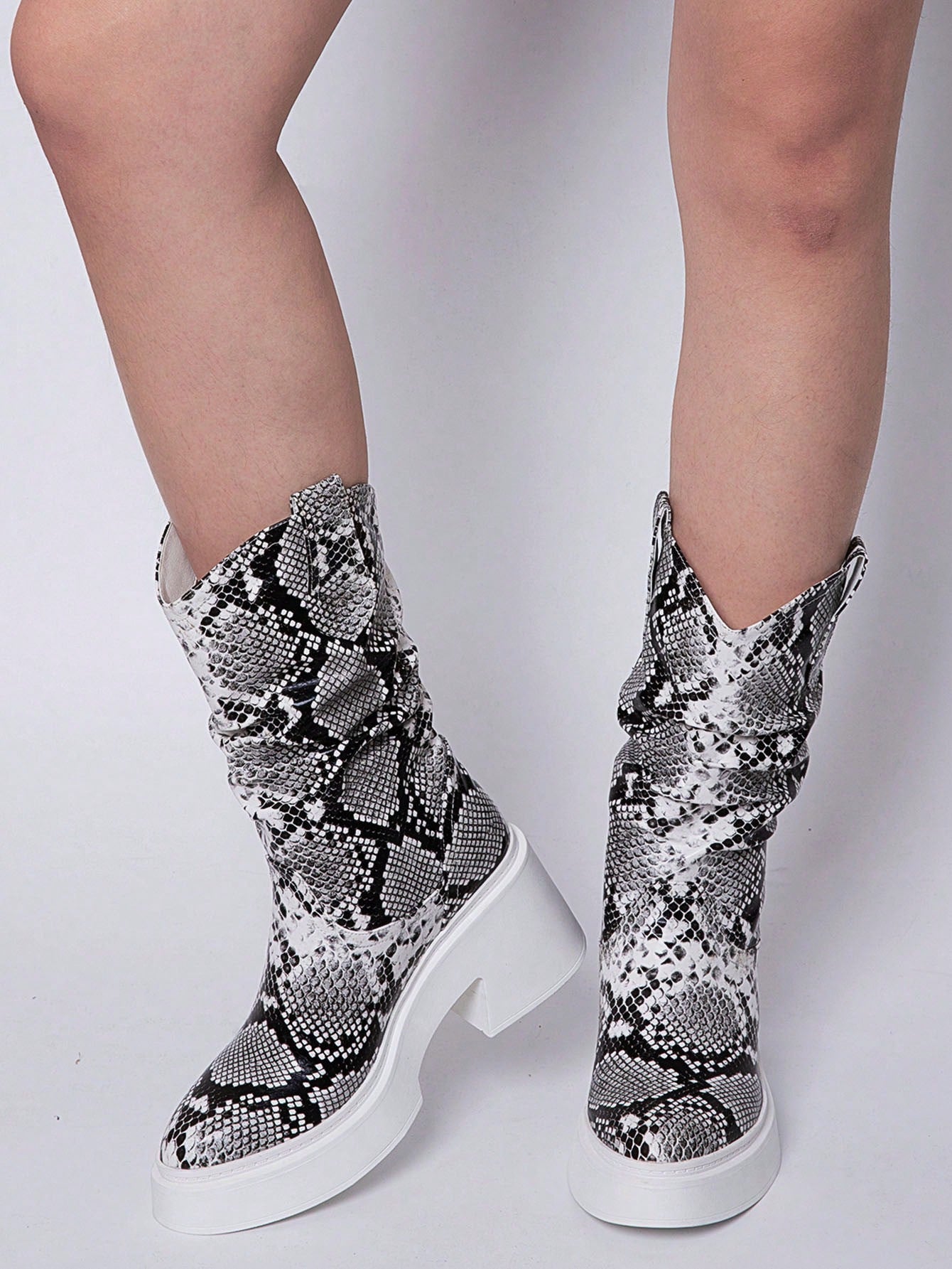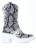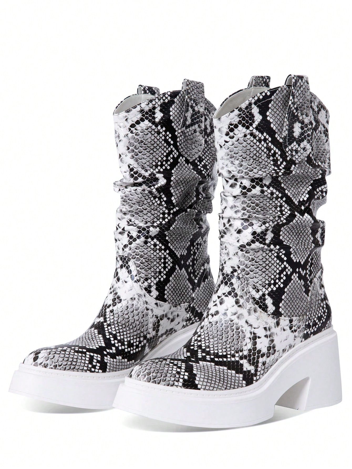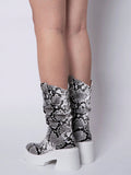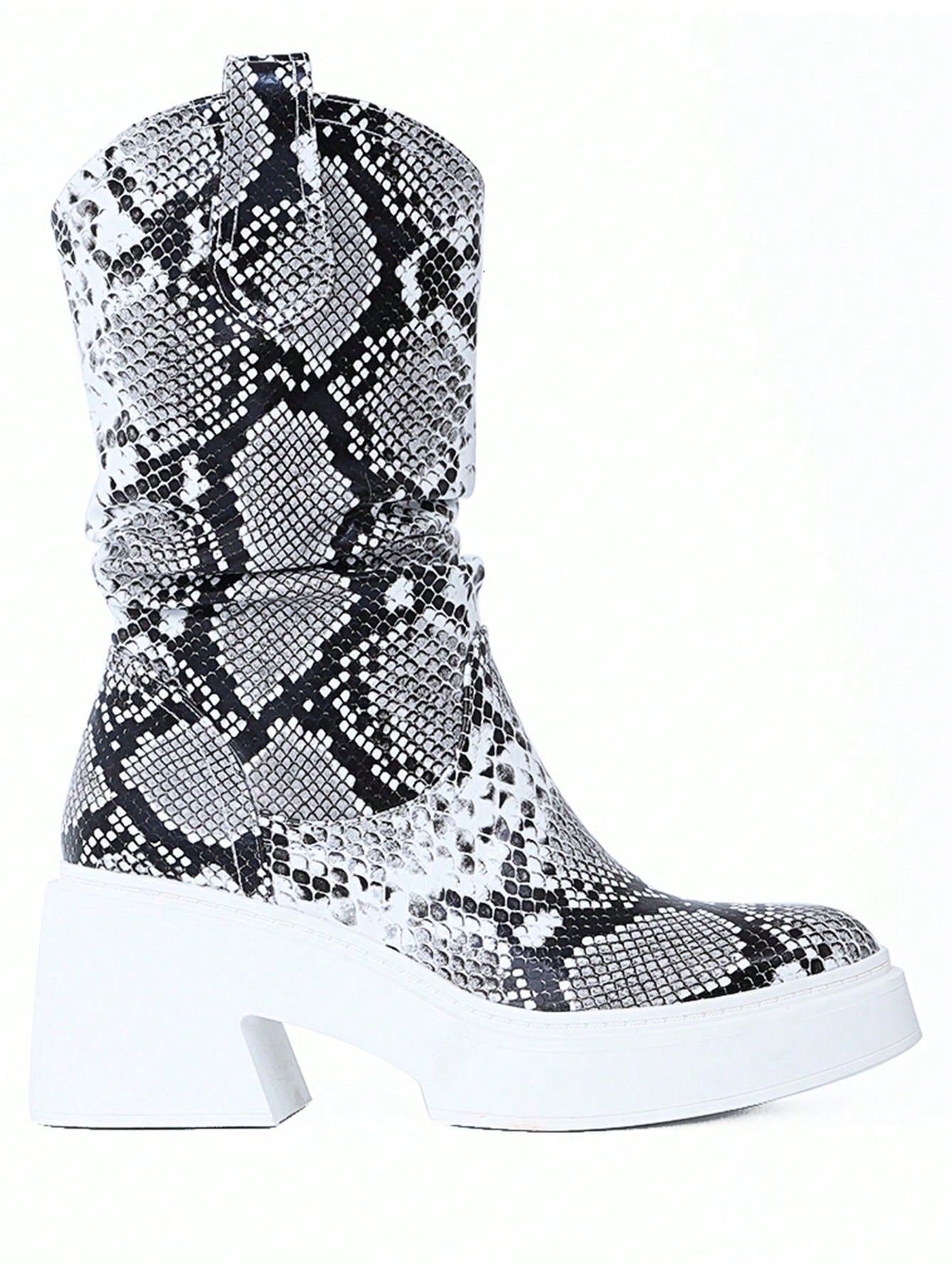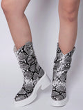 Slither in Style: Snake Pattern Mid-Calf Cowboy Boots for Women