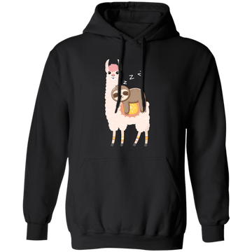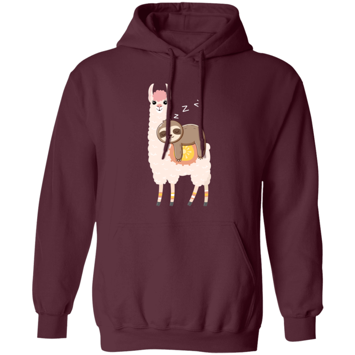 Sloth Laying On Llama, Sloth Sleeping, Cute Llama Pullover Hoodie