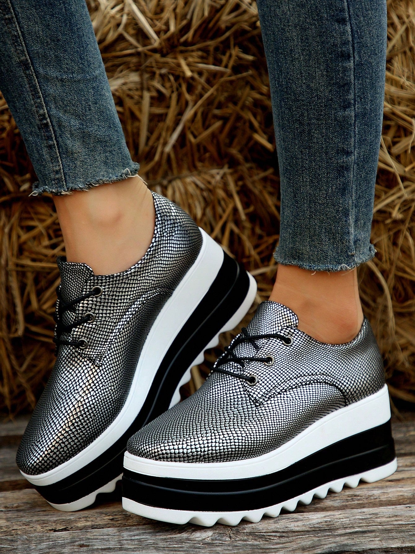 Snake Skin Sophistication: Women's Platform Wedge Heels with Square Toe