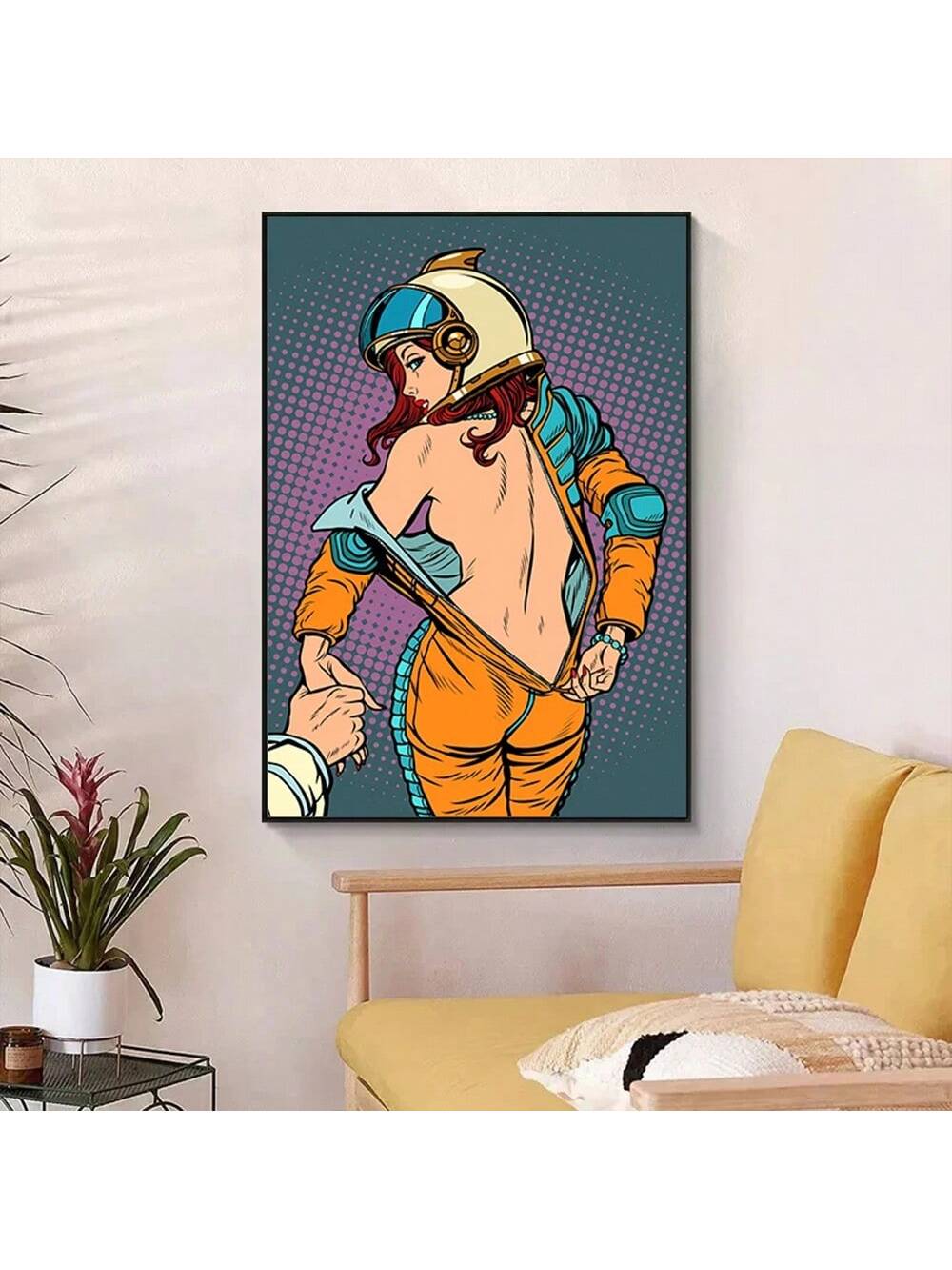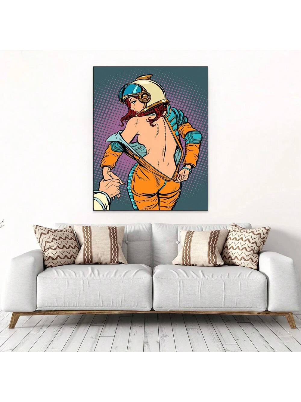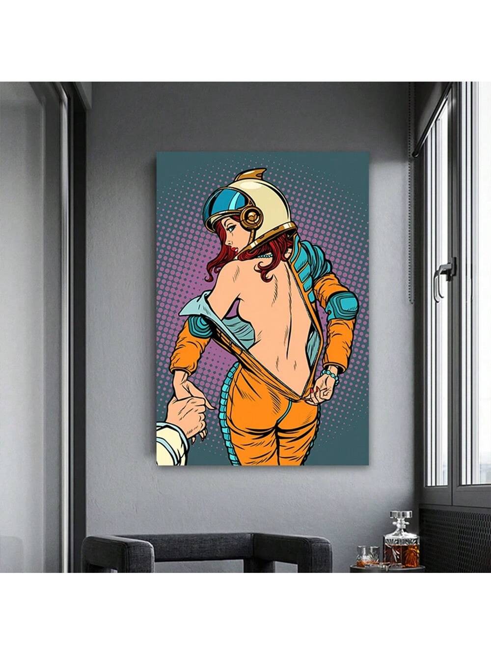 Space Explorer: Woman Astronaut Cartoon Comic Poster Canvas Print for Home Decor