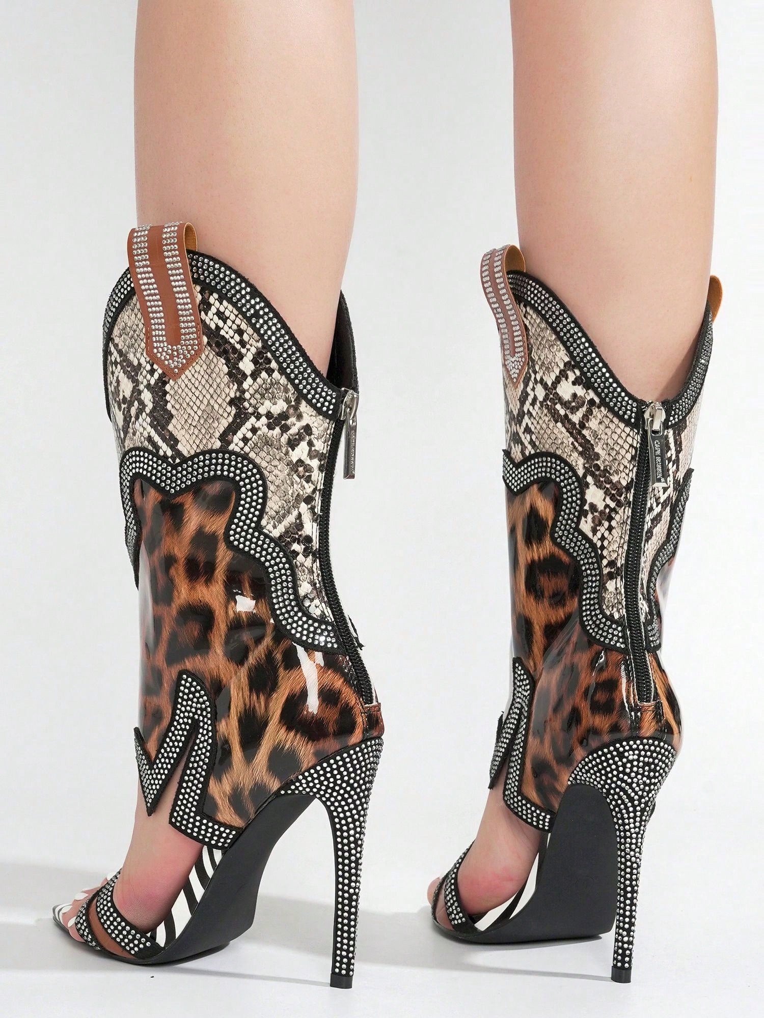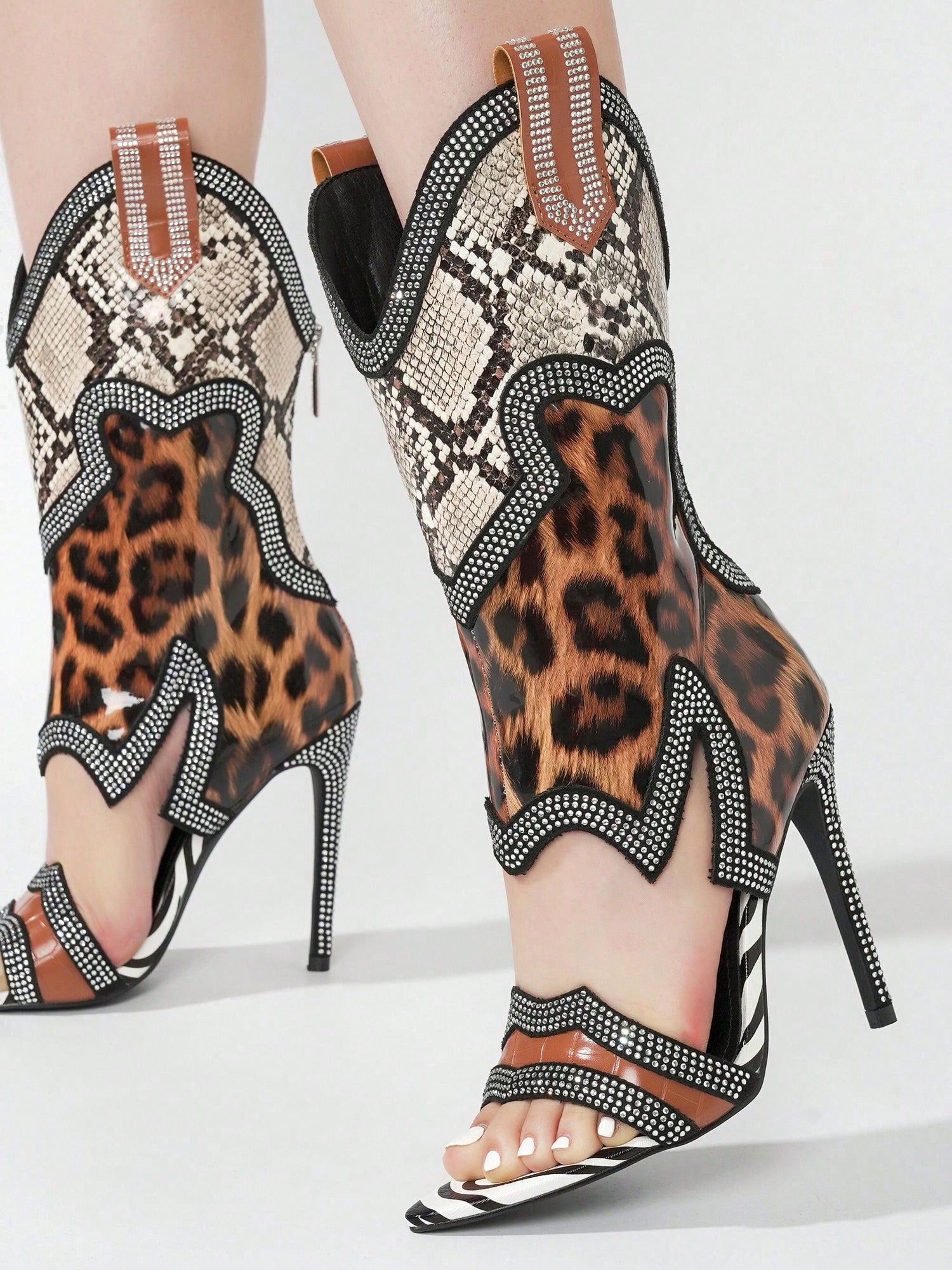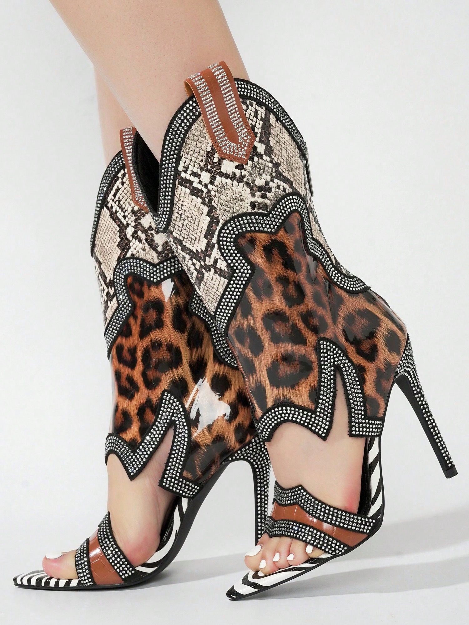 Sparkle and Shine: Nanaye Rhinestone Trim Open Toe High Heels