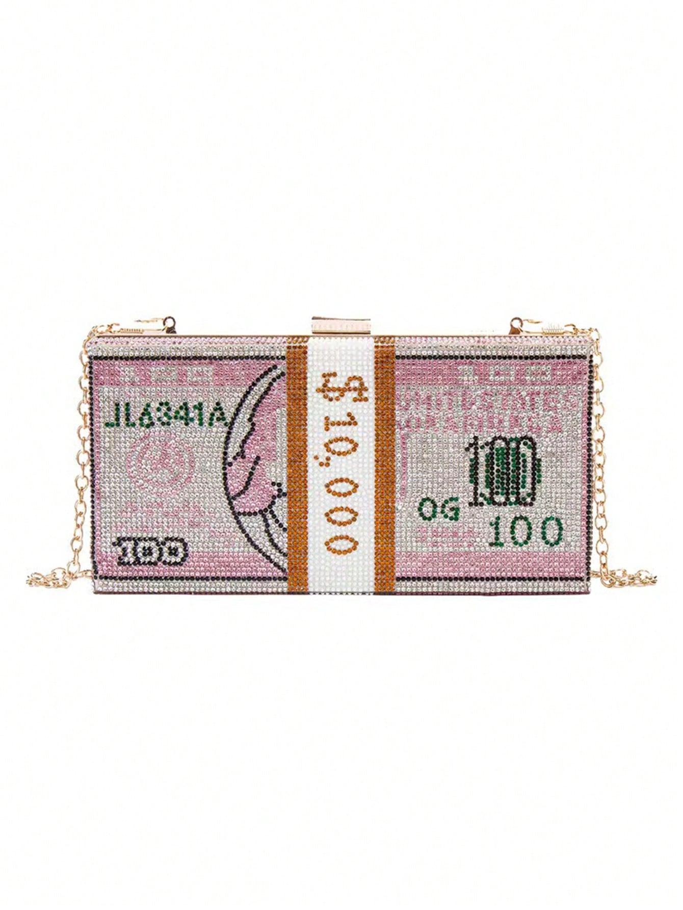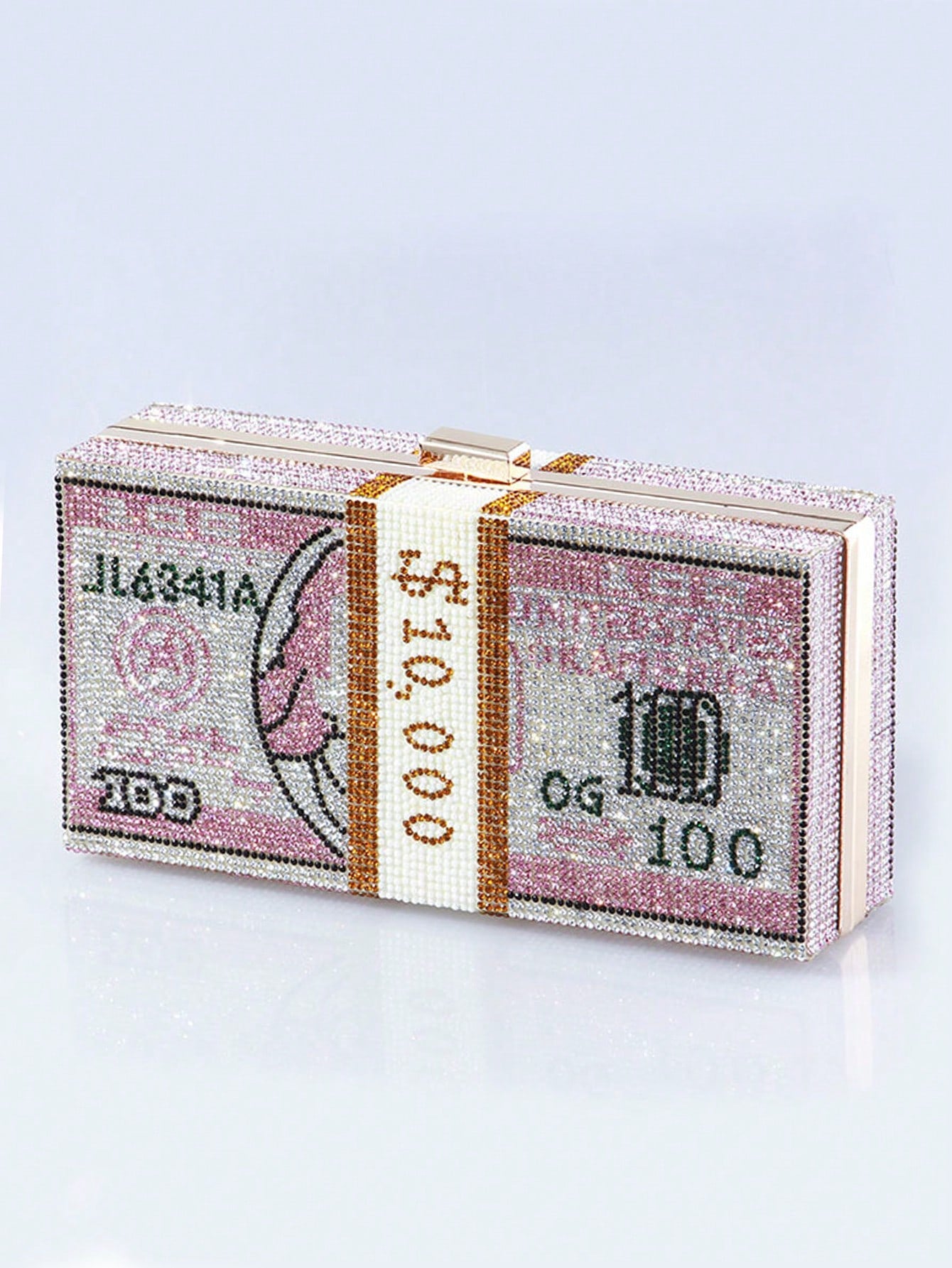 Sparkle and Shine Rhinestone Dollar Evening Bag: Crossbody Clutch for Party Glamour