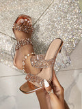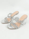 Sparkle and Shine: Women's Fashionable Glitter Peep Toe Mules with Crystal Block Heels