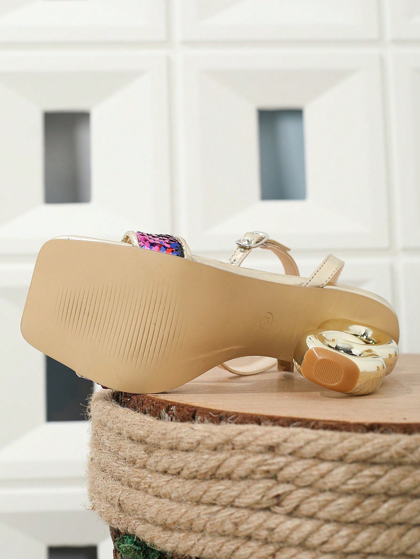 Sparkle in Style: French-Inspired Glitter Fabric Ankle Strap Sandals for Fashion-Forward Women