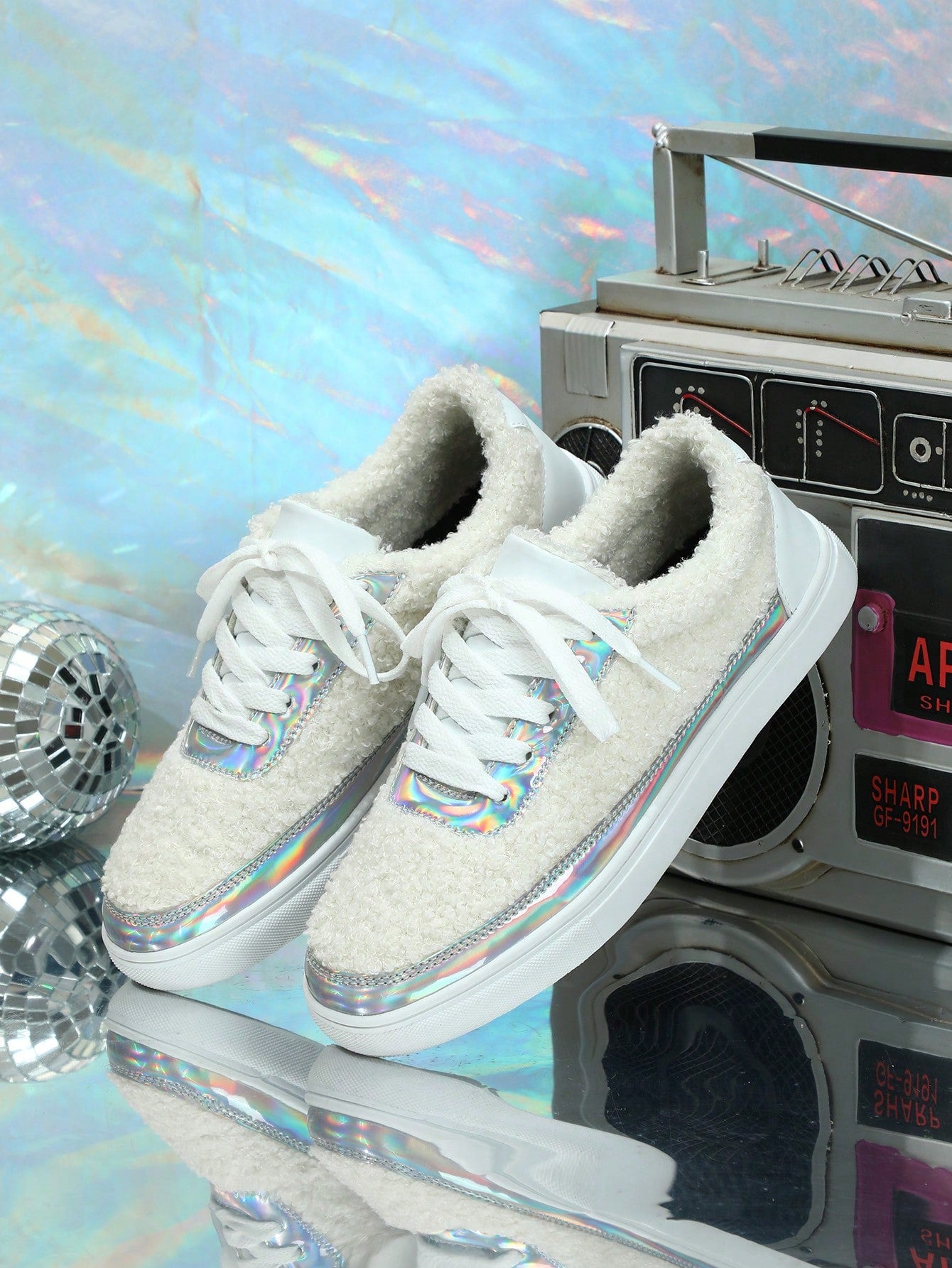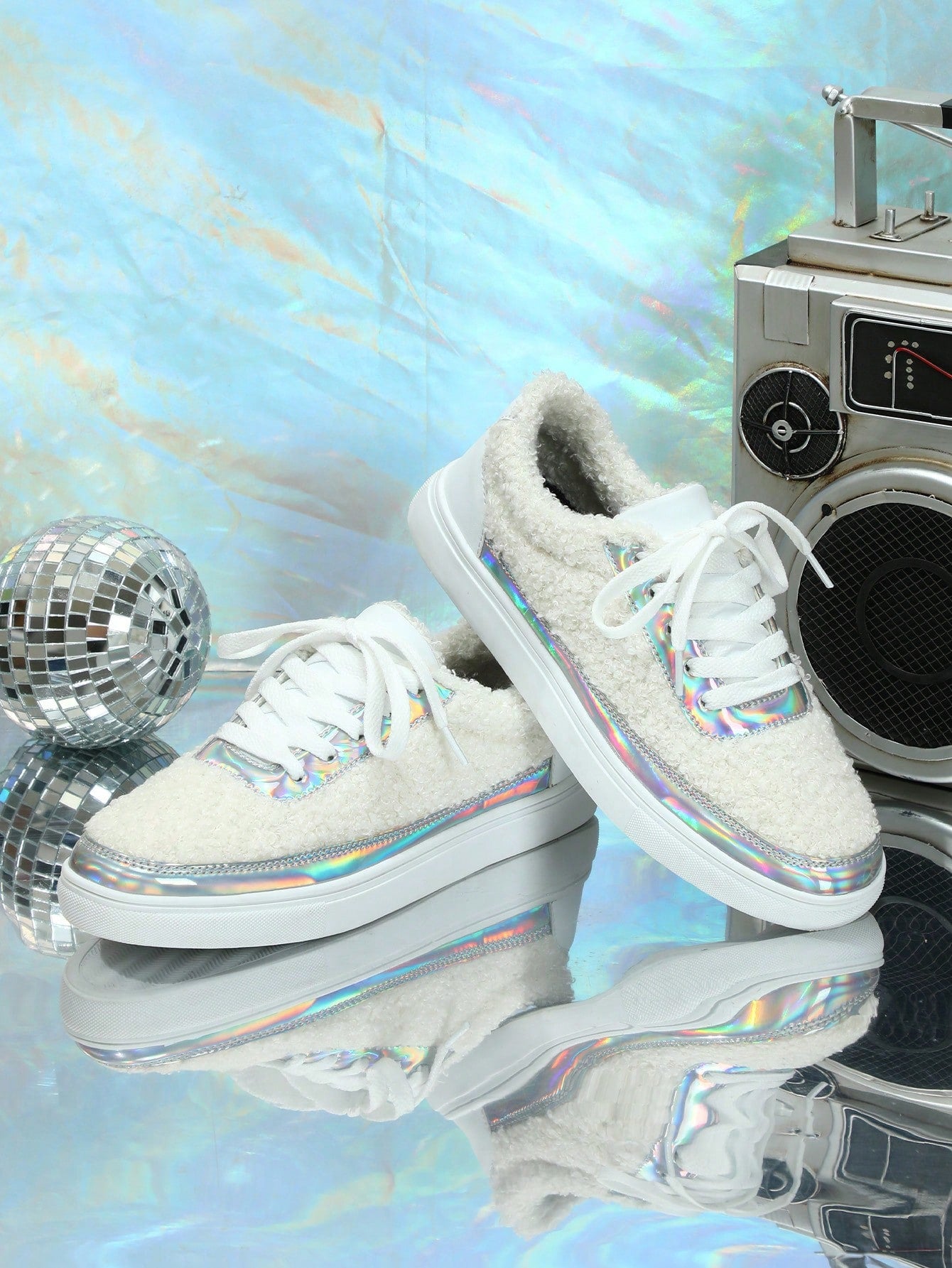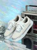 Sparkle into the New Year with White Shiny Silver Color-Spliced Sneakers - Perfect Christmas Gift for Women!