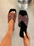 Elevate your casual summer look with our Sparkling Black Suede Sandals. These sandals add a touch of sparkle to your outfit, while the suede material offers a stylish and comfortable fit. Perfect for any occasion, these sandals are a must-have for the season.