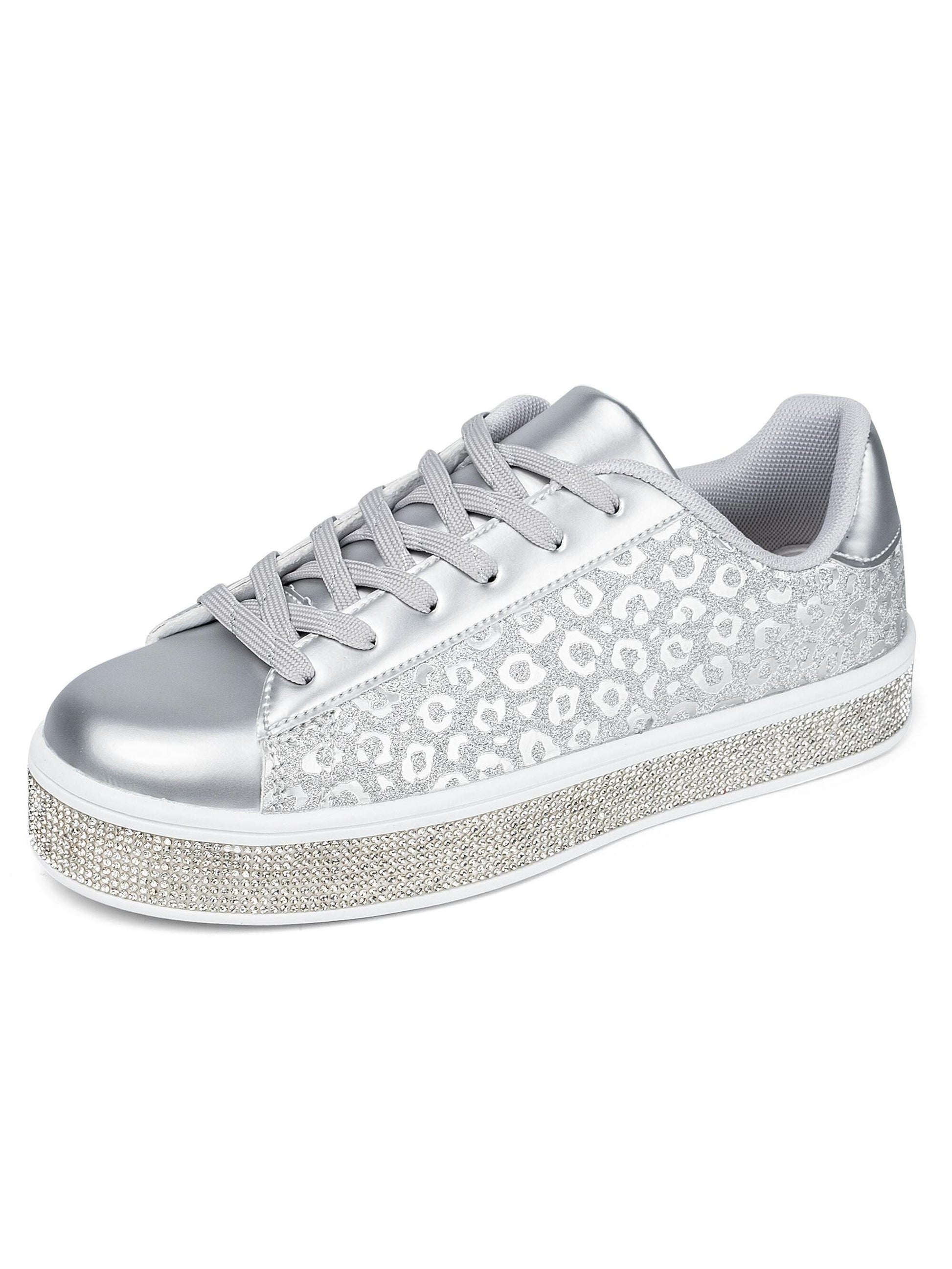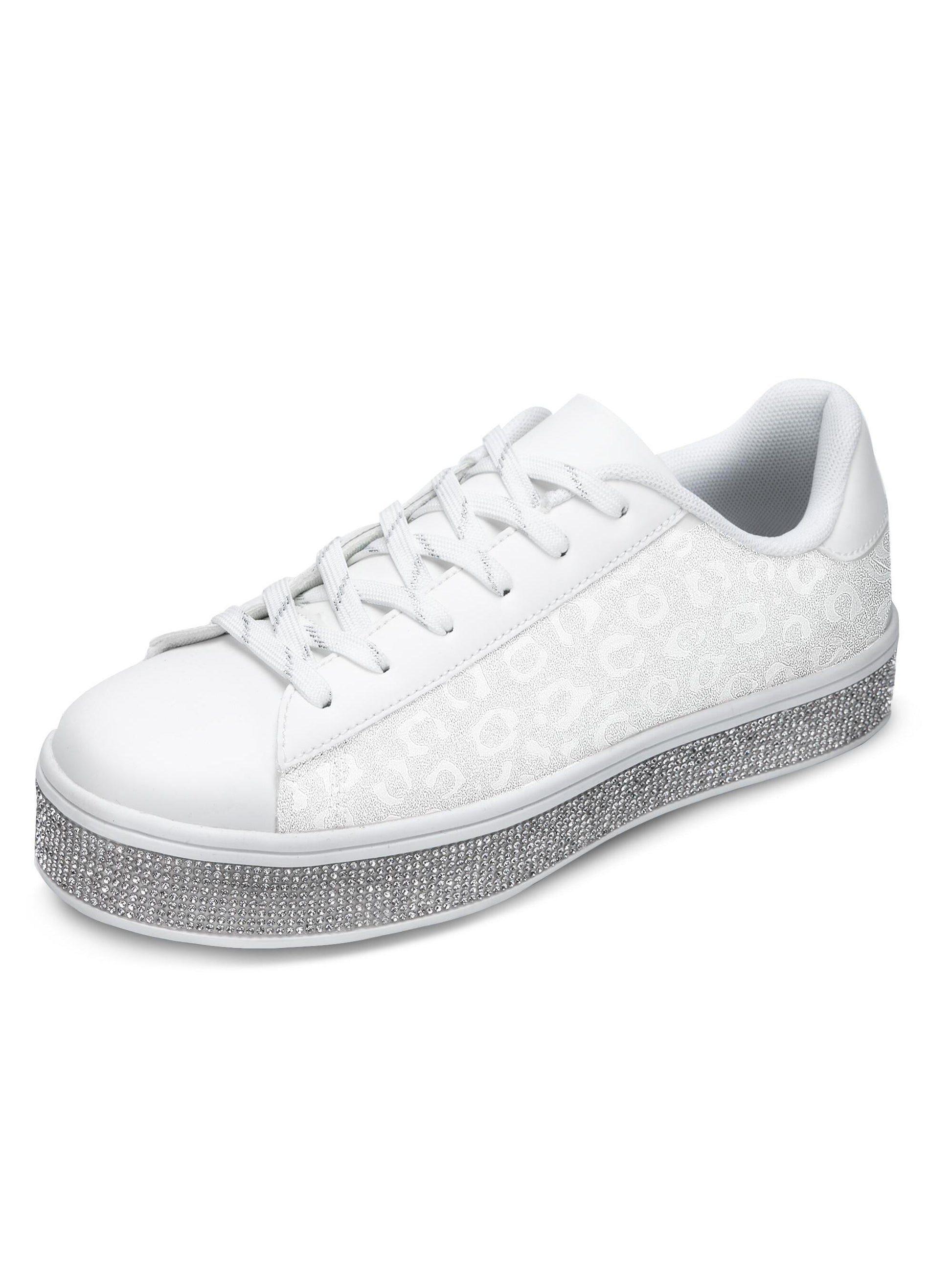 These Sparkling Floral Dressy Sneakers feature a shimmery rhinestone design perfect for wedding or glamorous occasions. The floral pattern is adorned with iridescent crystals for added glamour and shine. Make a statement with these beautiful dressy sneakers.