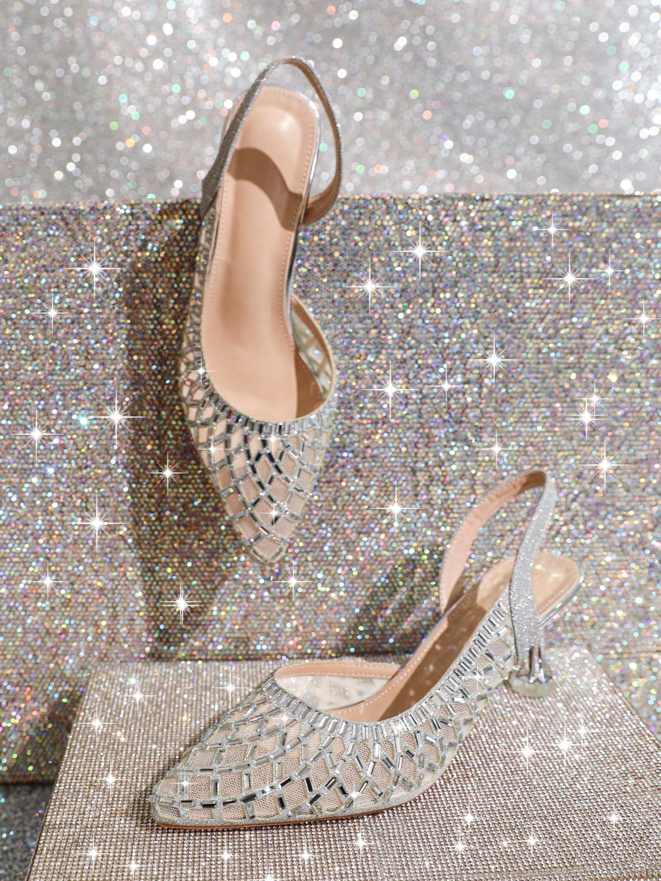 Sparkling Glamour: Women's Glitter Stiletto Heels with Rhinestone Accents - Perfect for Weddings