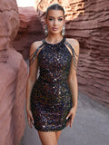 Effortlessly shine in our Sparkling Night Out: Chain Detail Sequin Bodycon Dress. With its intricate chain detail and sparkling sequins, this dress is sure to turn heads. Its bodycon fit hugs your curves in all the right places, making you feel confident and glamorous. Perfect for any special occasion, this dress is a must-have for your wardrobe.