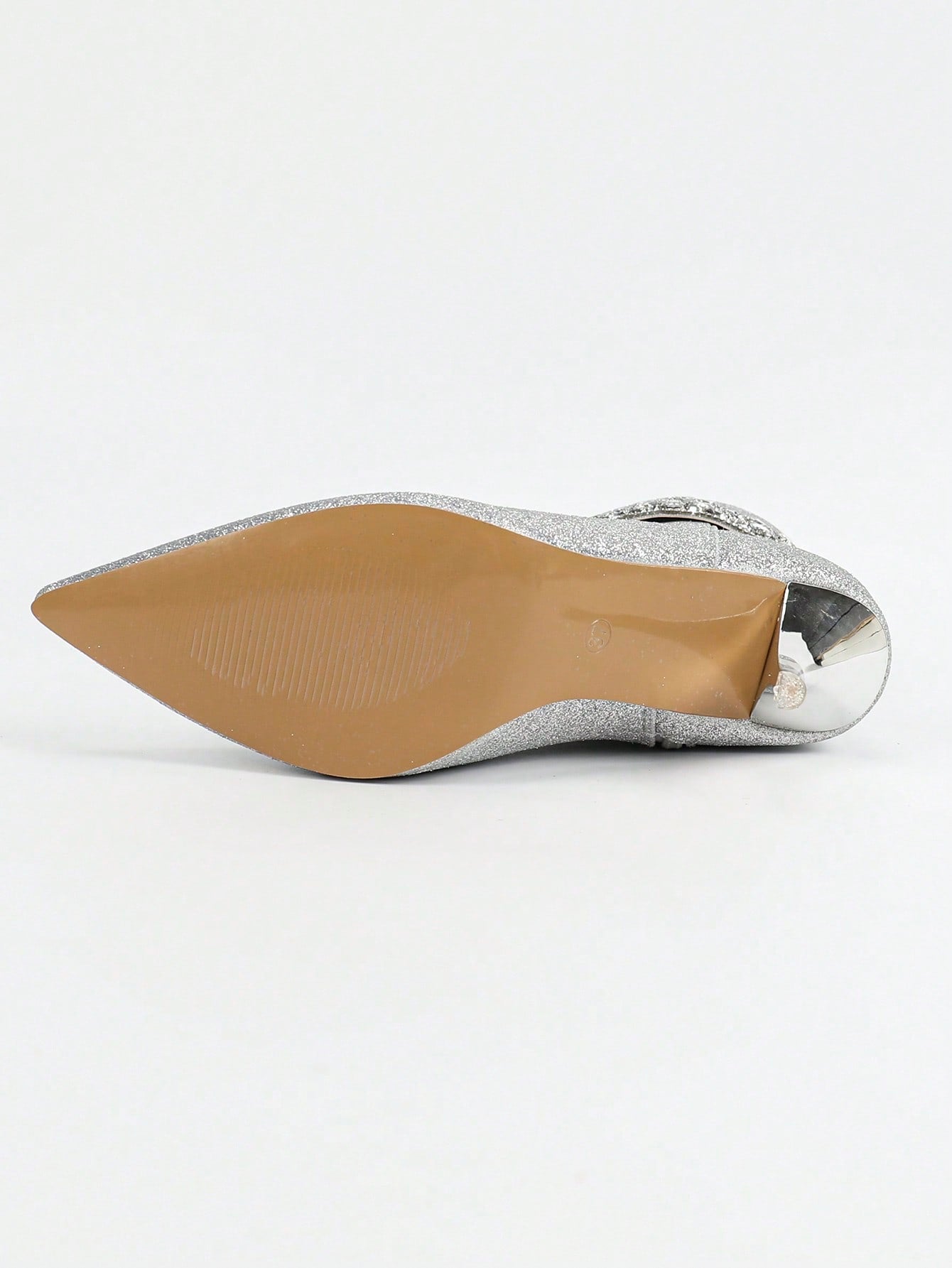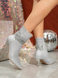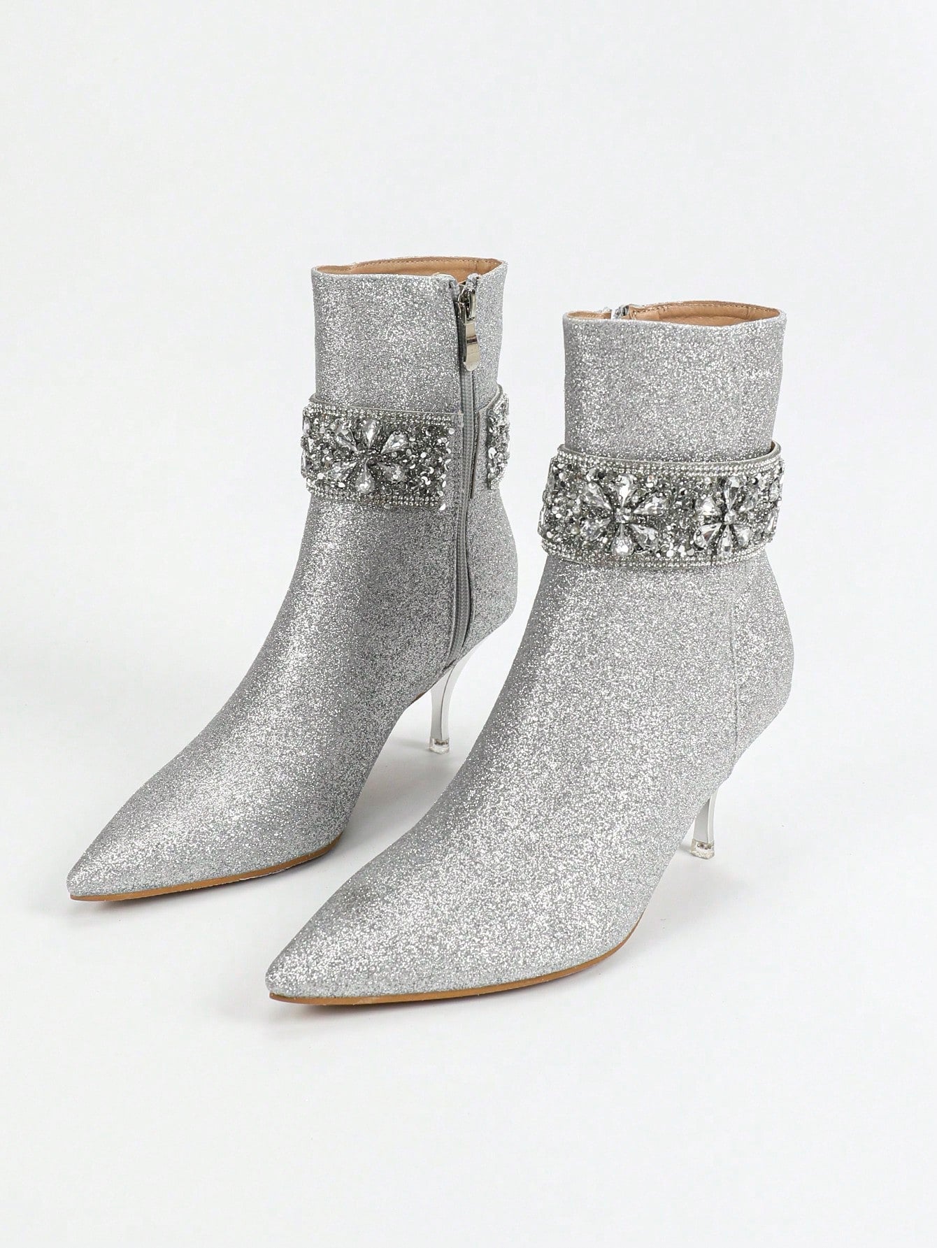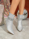 Sparkling Rhinestone Pointed Toe High Heel Boots - Perfect for Parties, Gatherings, and Weddings