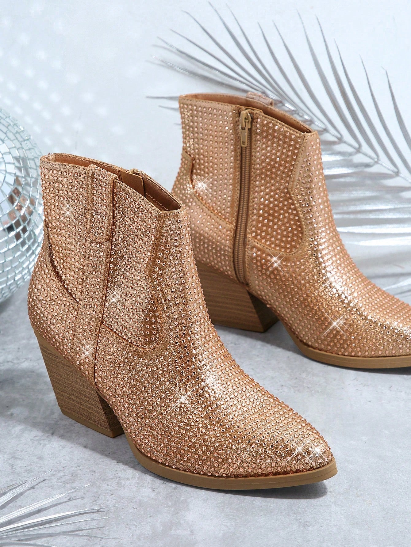 Sparkling Rhinestone Zipper Booties - Shine with Every Step