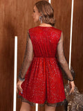 Sparkling Sequin Glamour: Mesh Splicing Glittering Sequin Dress